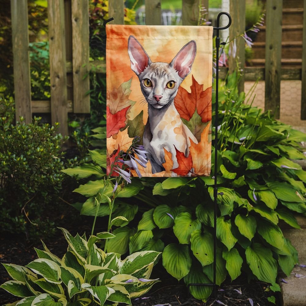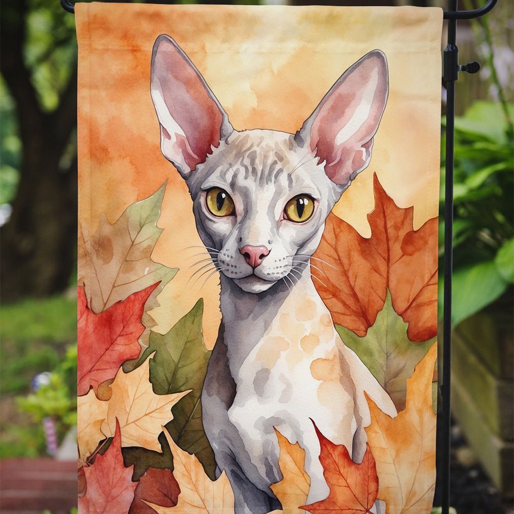 Edge Collections - 11 1/4" X 15 1/2" - Multicolor - Garden Cornish Rex Cat In Fall Leaves Decorative Garden Flag - 1 Piece