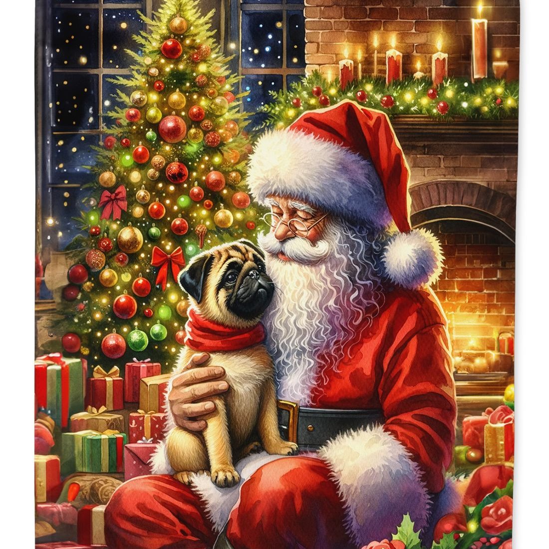 Edge Collections - 11.25" X 15.50" - Multicolor - Fawn Pug and Santa Claus - 1 Piece