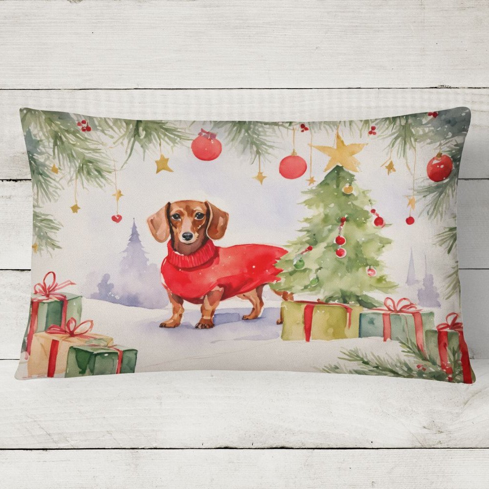Edge Collections - 12" X 16" - Multicolor - Christmas Pillow Throw Waiting on Dachshund 1344 - 1 Piece