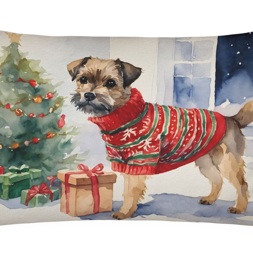 Edge Collections - 12" X 16" - Multicolor - On Waiting Christmas Throw Pillow Border Terrier 1274 - 1 Piece