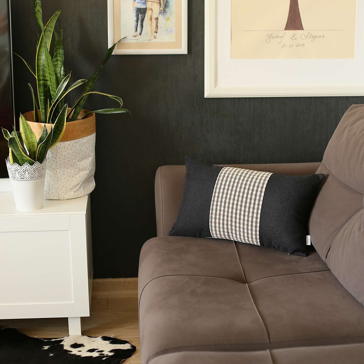 Edge Collections - 12" x 20" - Black - Stylish Houndstooth Lumbar Pillow Cover - 1 Pcs