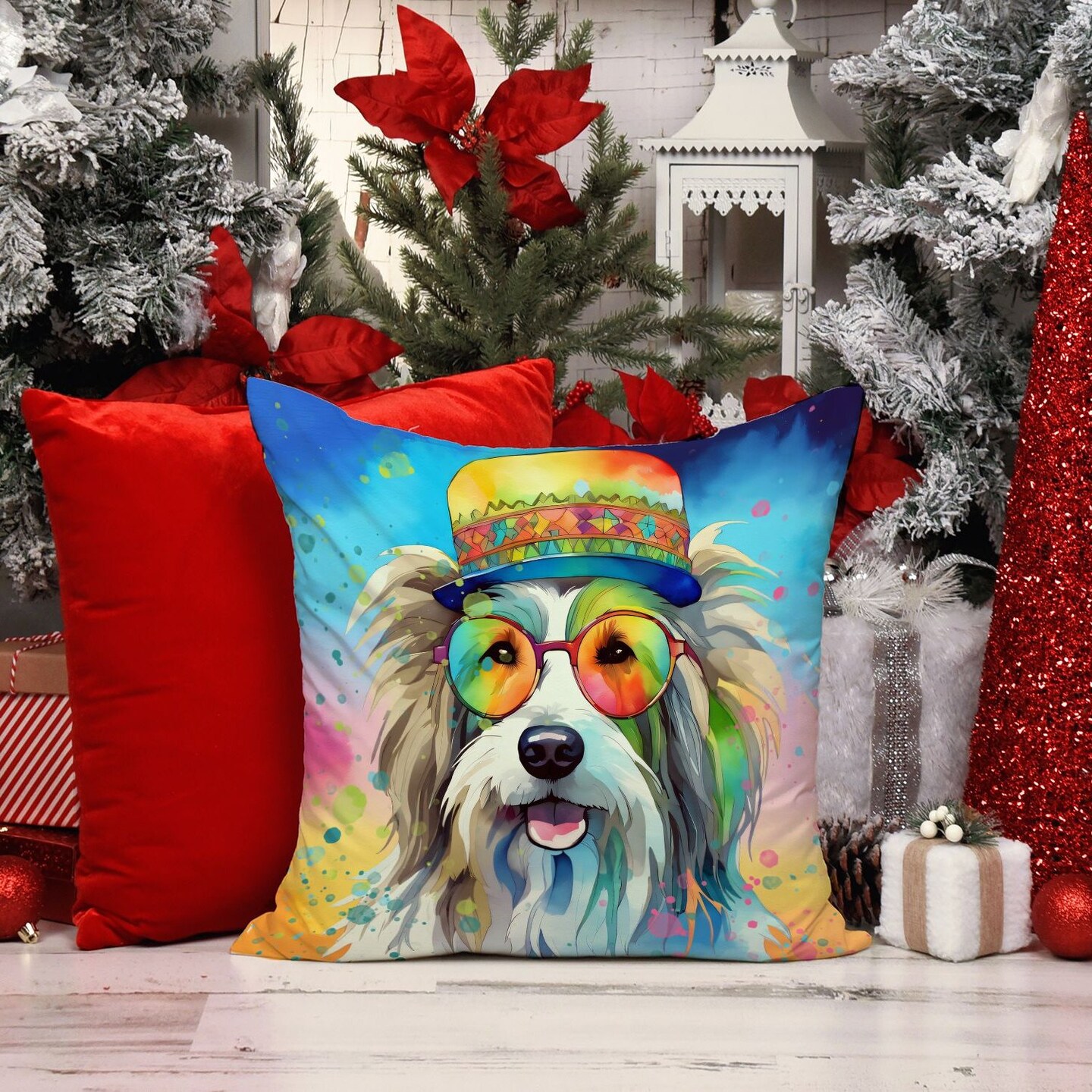 Edge Collections - 14" X 14" - Multicolor - Bearded Collie Hippie Dawg Throw - 1 Piece