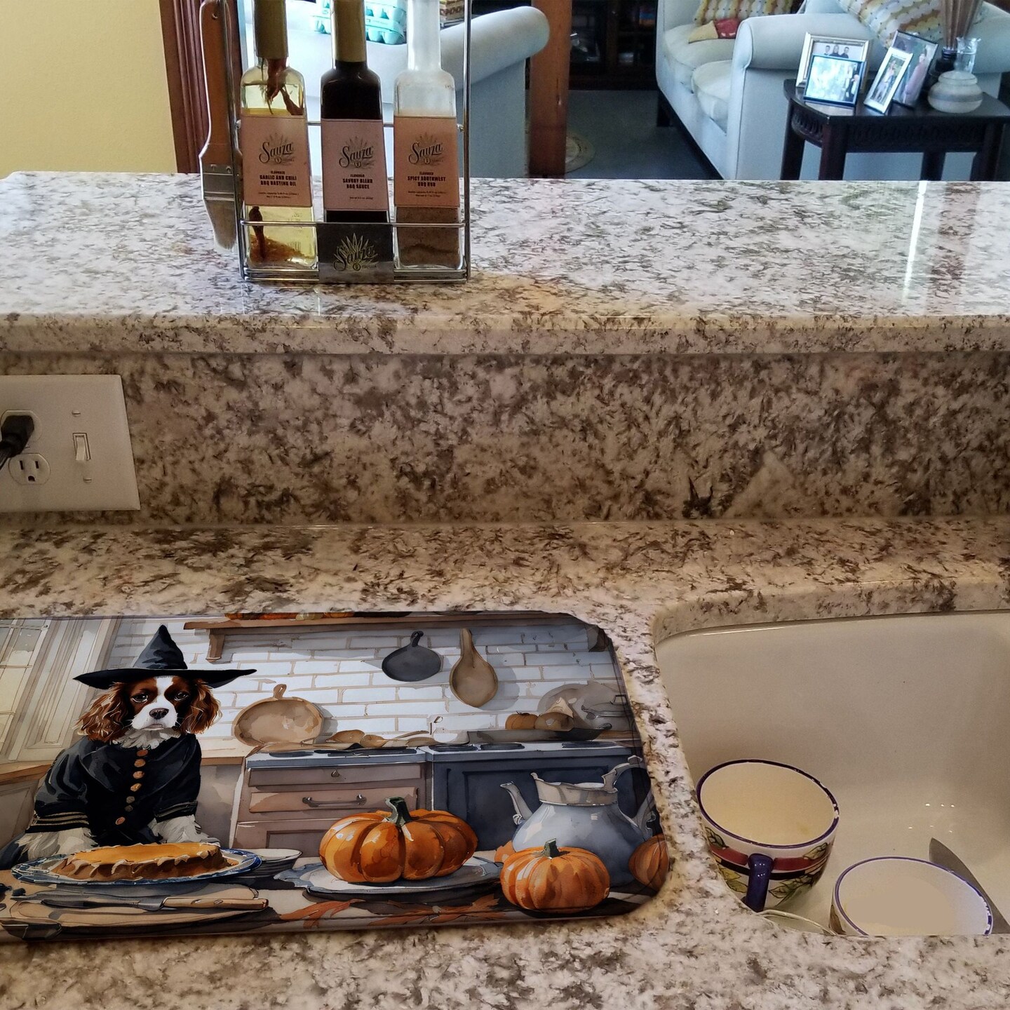 Edge Collections - 14" x 22" - Multicolor - Cavalier Spaniel Fall Kitchen Pumpkins Dish Drying Mat - 1 Piece