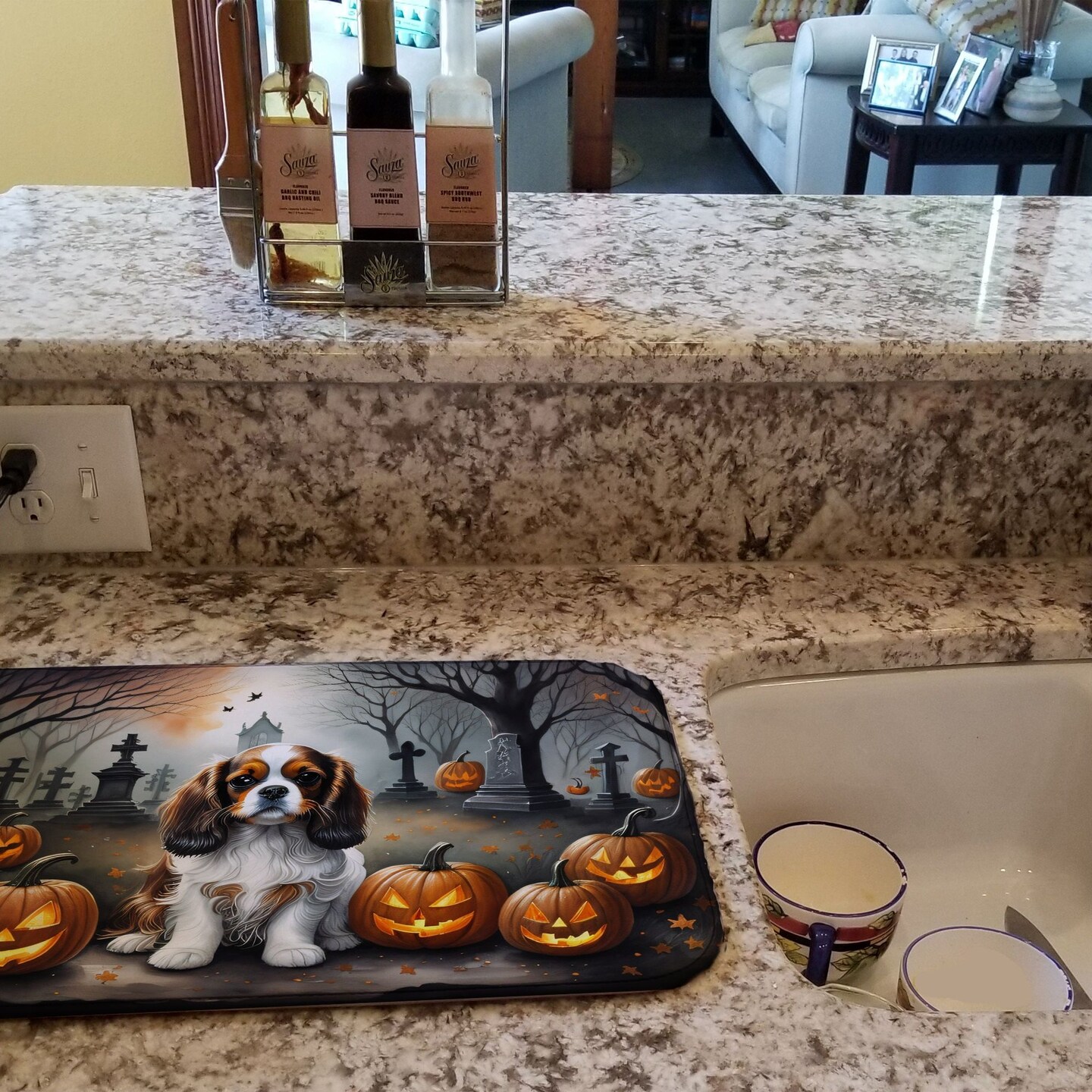 Edge Collections - 14" x 22" - Multicolor - Cavalier Spaniel Spooky Halloween Dish Drying Mat Absorbent Kitchen Counter Pad - 1 Piece