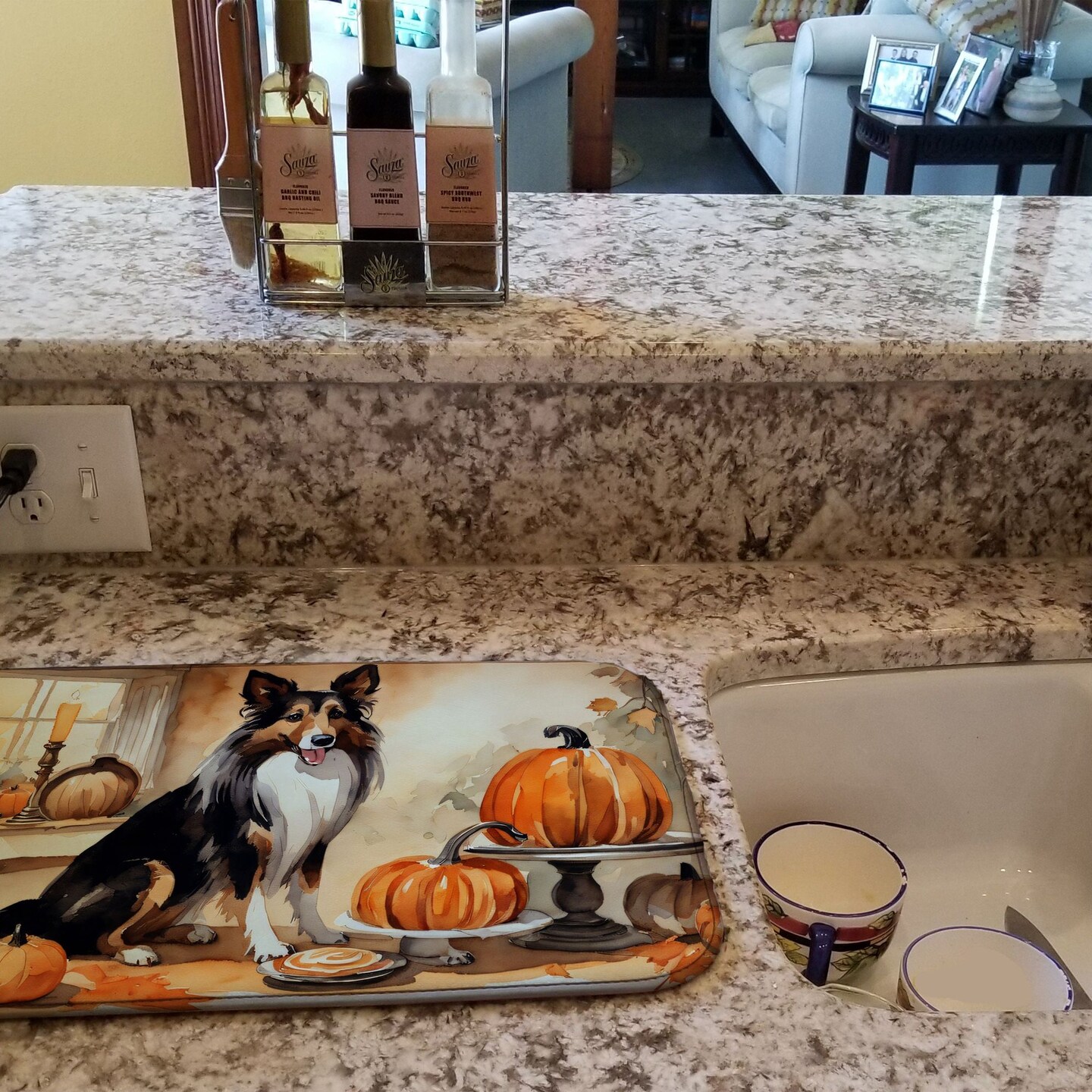 Edge Collections - 14" x 22" - Multicolor - Collie Fall Dish Drying Mat Pad - 1 Piece