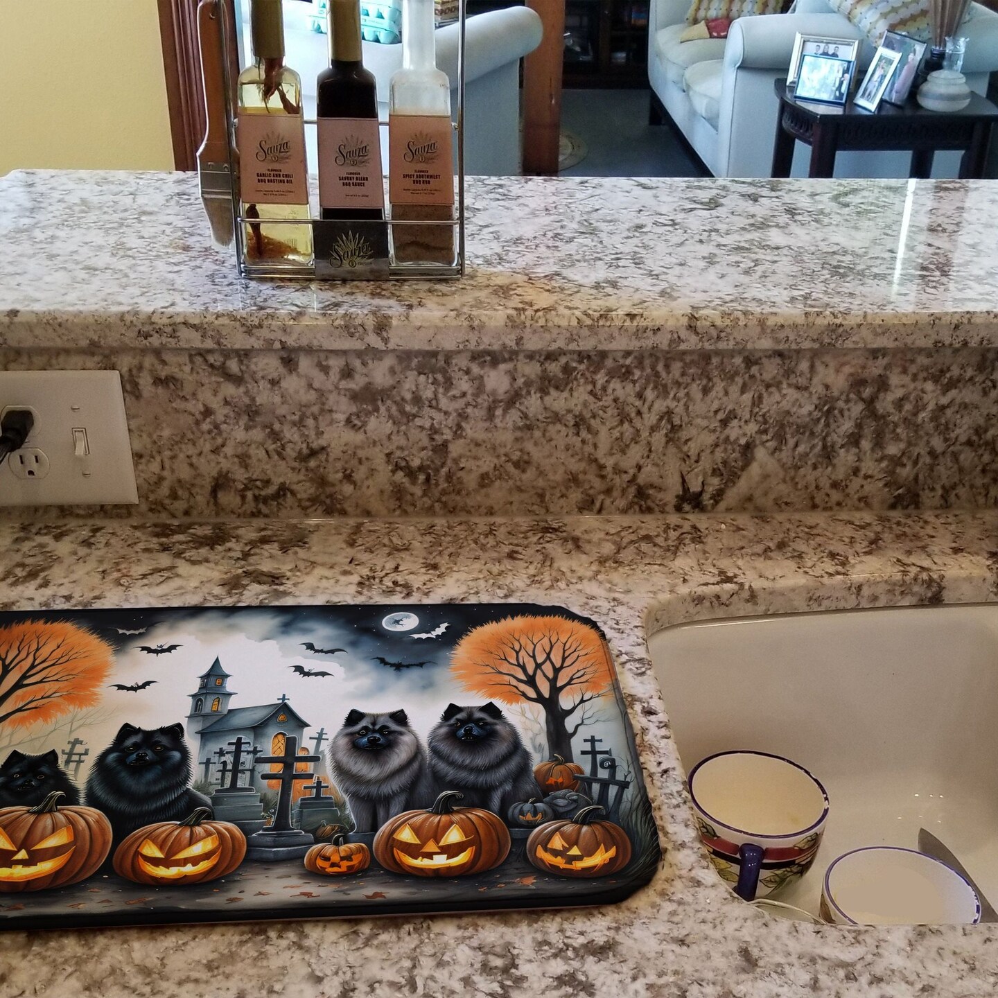 Edge Collections - 14" x 22" - Multicolor - Keeshond Spooky Halloween Dish Drying Mat Pad - 1 Piece