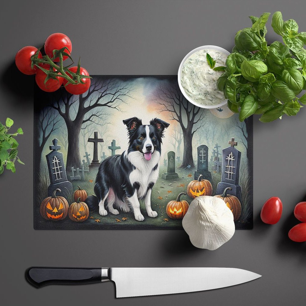 Edge Collections - 15" x 12" - Multicolor - Border Collie Halloween Glass Cutting Board - 1 Piece