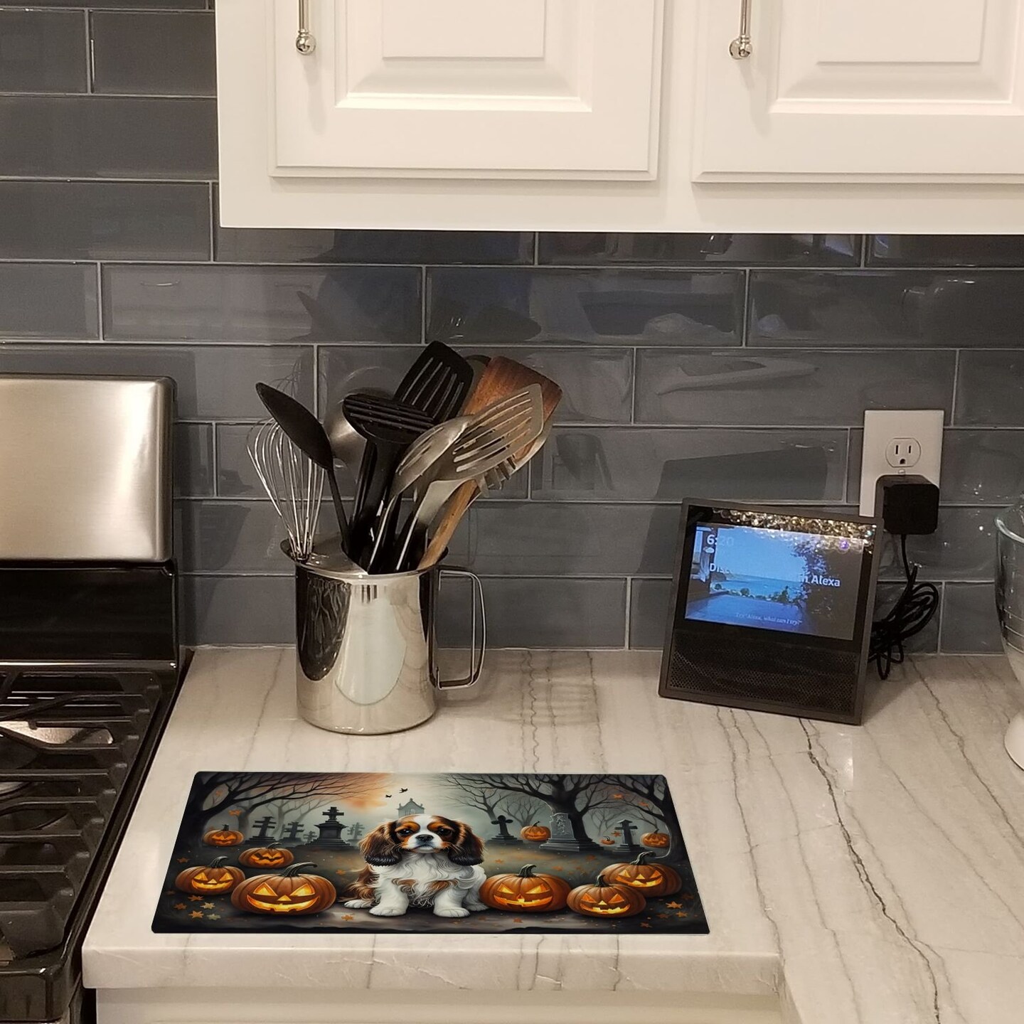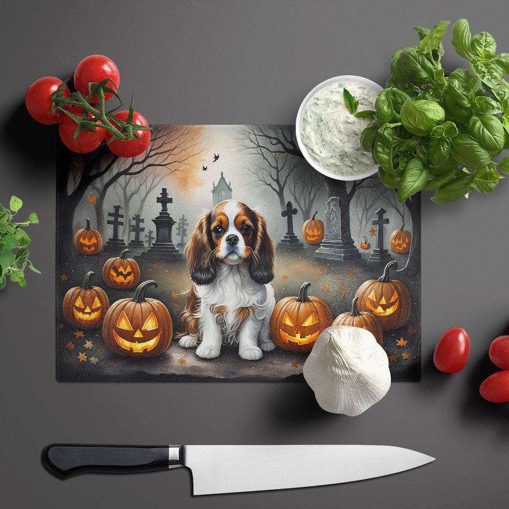 Edge Collections - 15" x 12" - Multicolor - Halloween Cavalier Spaniel Glass Cutting Board - 1 Piece