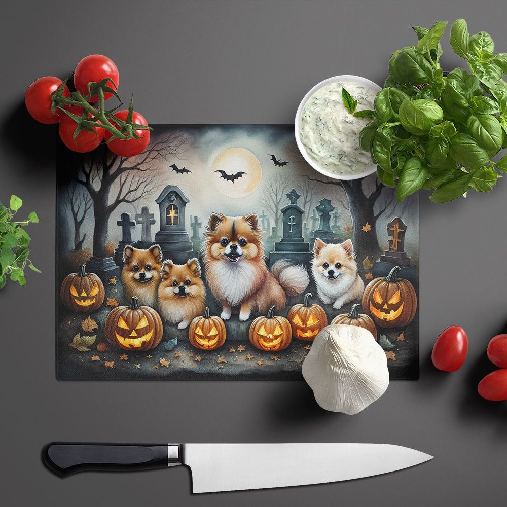 Edge Collections - 15" x 12" - Multicolor - Pomeranian Spooky Halloween Decorative Glass Cutting Board - 1 Piece