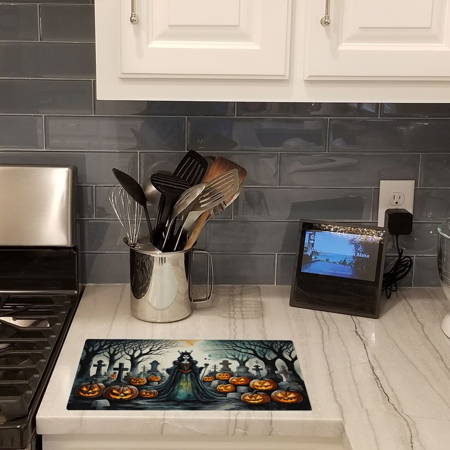 Edge Collections - 15" x 12" - Multicolor - Spooky Halloween Glass Cutting Board - 1 Piece