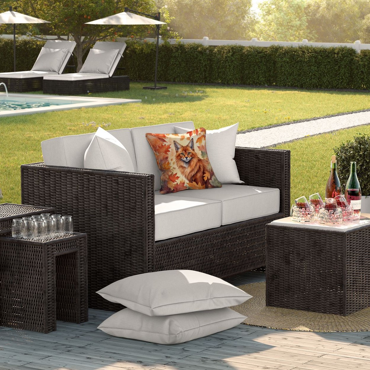 Edge Collections - 18" x 18" - Multicolor - Somali Cat Fall Leaves Throw Pillow - 1 Piece