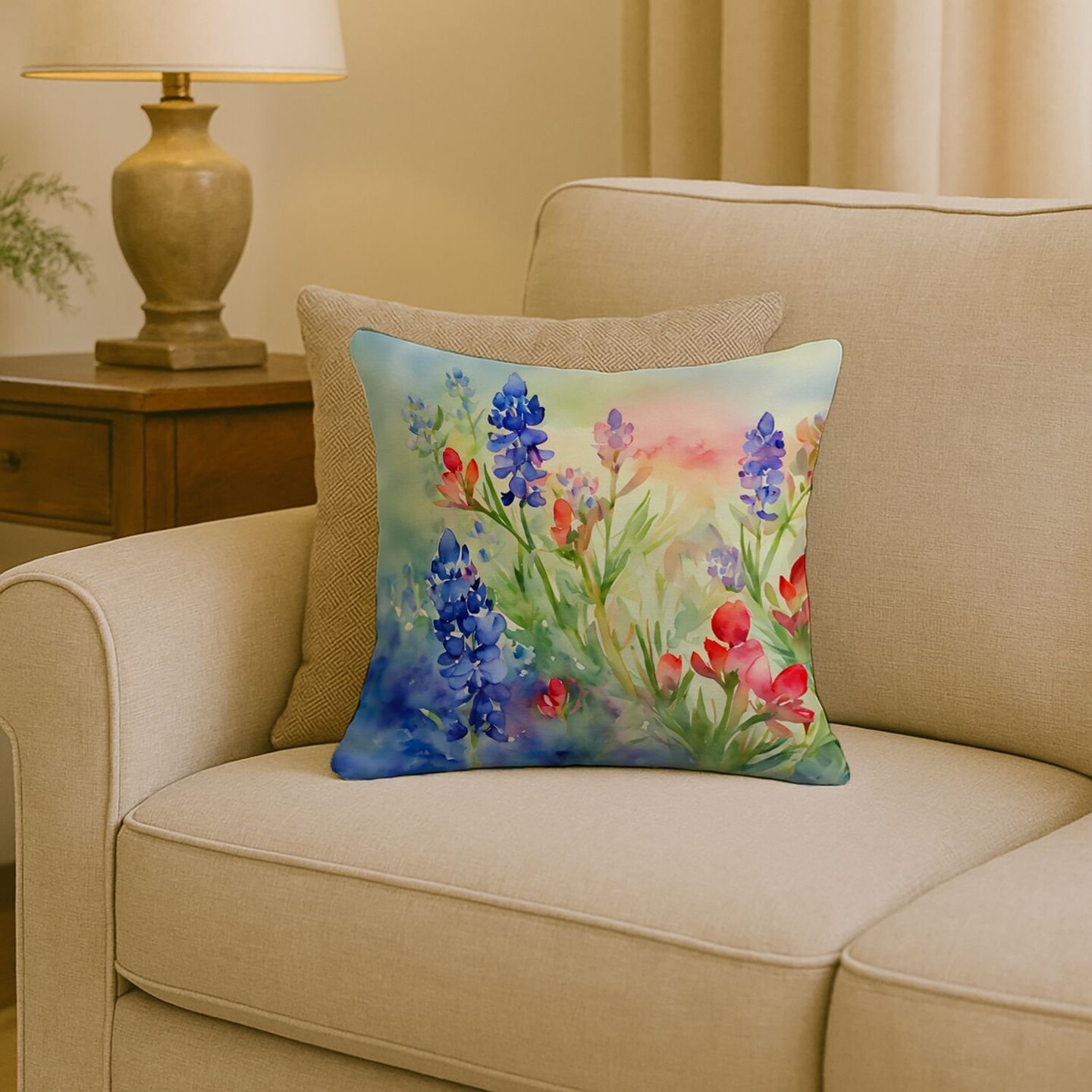 Edge Collections - 18" X 18" - Multicolor - Texas Bluebonnets in Watercolor Throw - 1 Piece