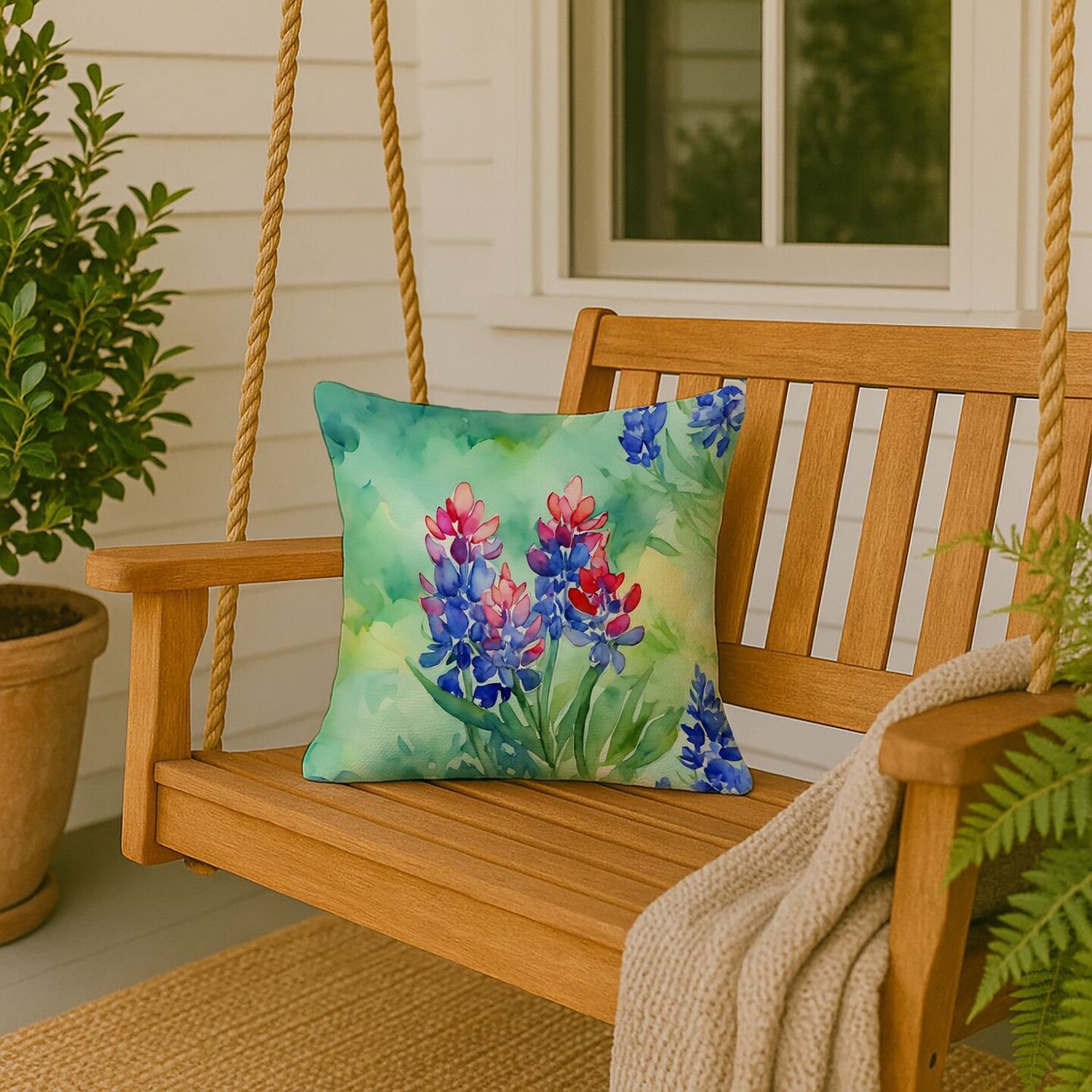Edge Collections - 18" x 18" - Multicolor - Texas Bluebonnets Throw Pillow , Machine Washable Indoor Outdoor Decorative Pillow - 1 Piece