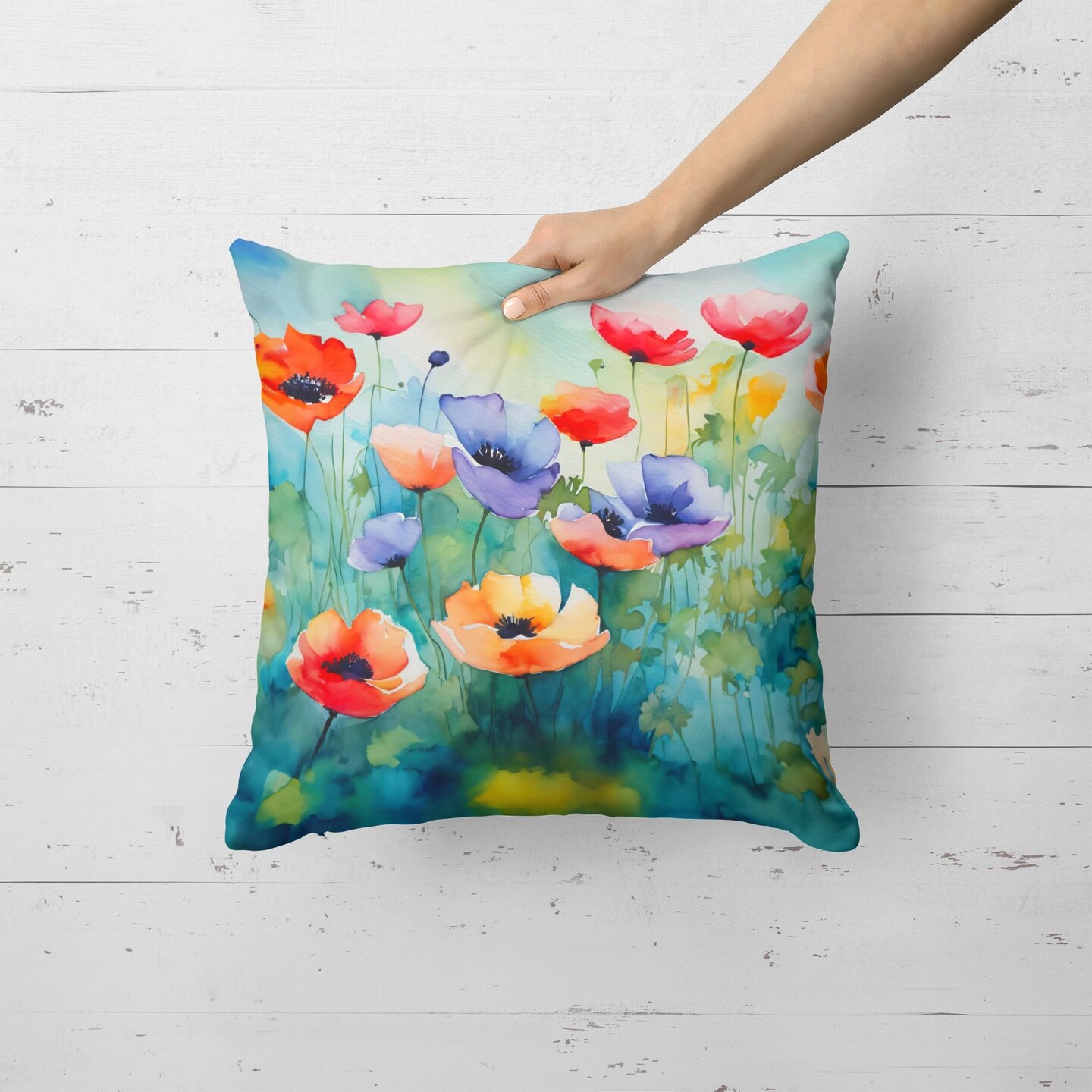 Edge Collections - 18" X 18" - Multicolor - Throw Pillow Anemones Watercolor - 1 Piece