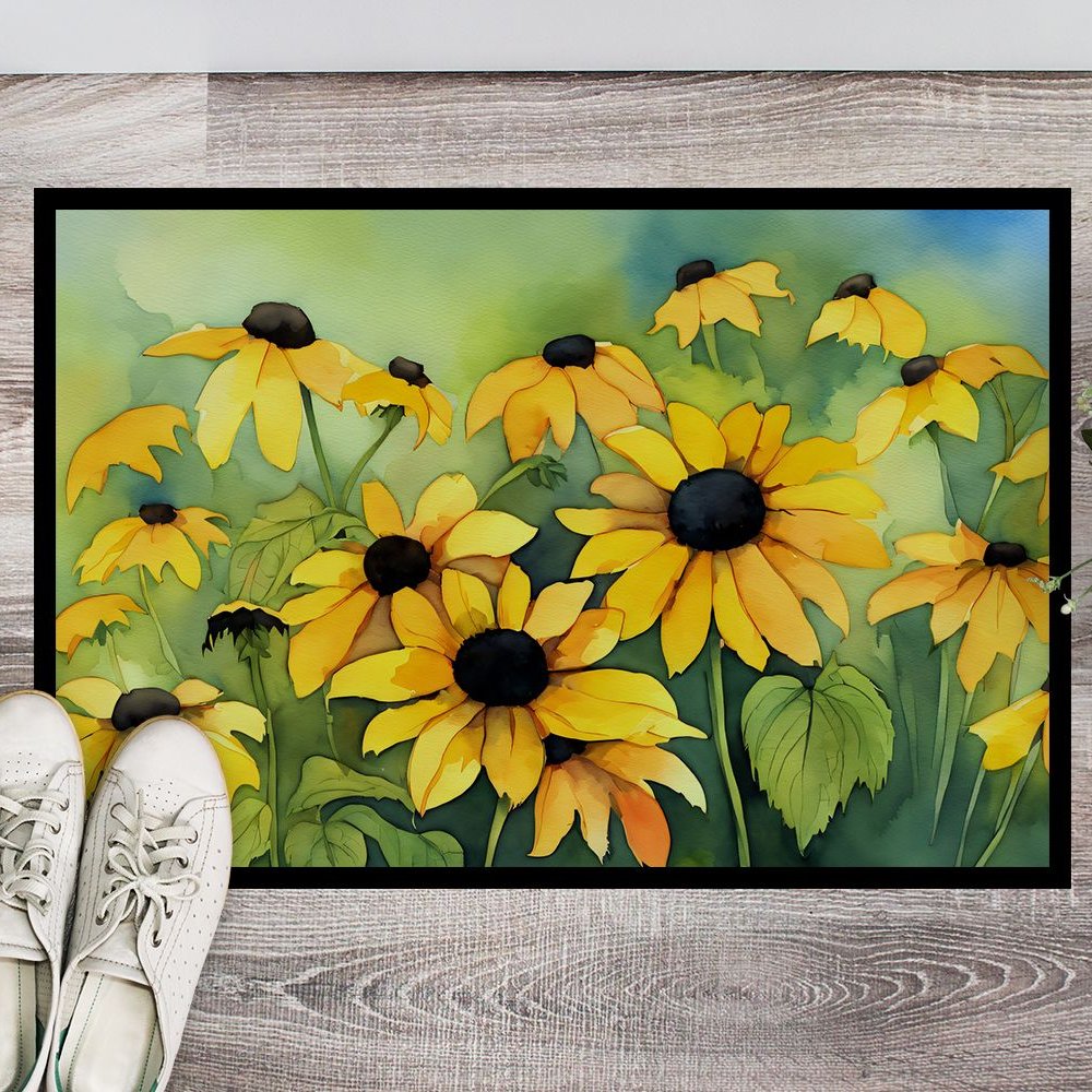 Edge Collections - 18" x 27" - Multicolor - Maryland Black-Eyed Susans Watercolor Doormat Non Slip Washable - 1 Piece