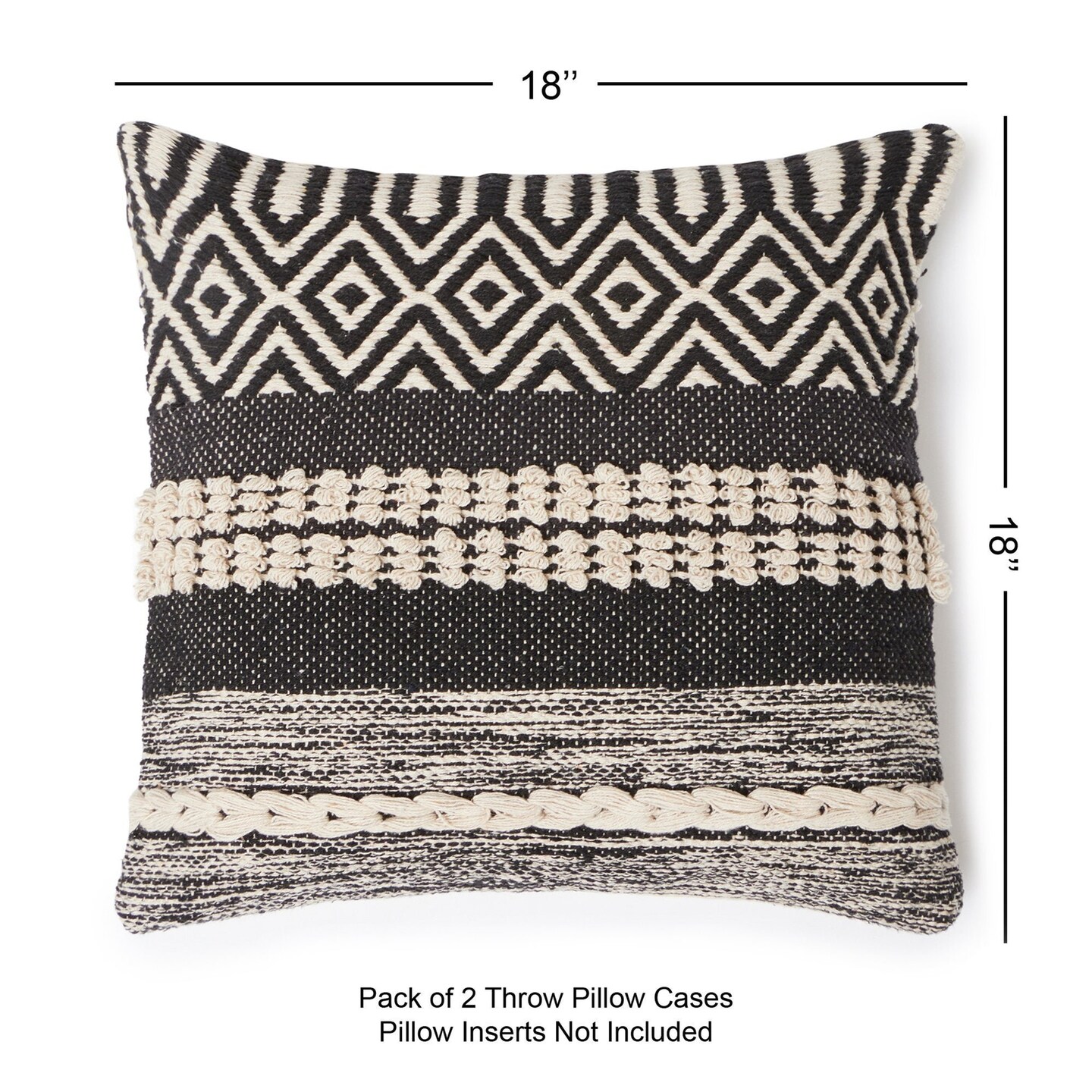 Edge Collections - 18"x18" - Black - Boho Decorative Throw Pillow Covers - 2 Pieces
