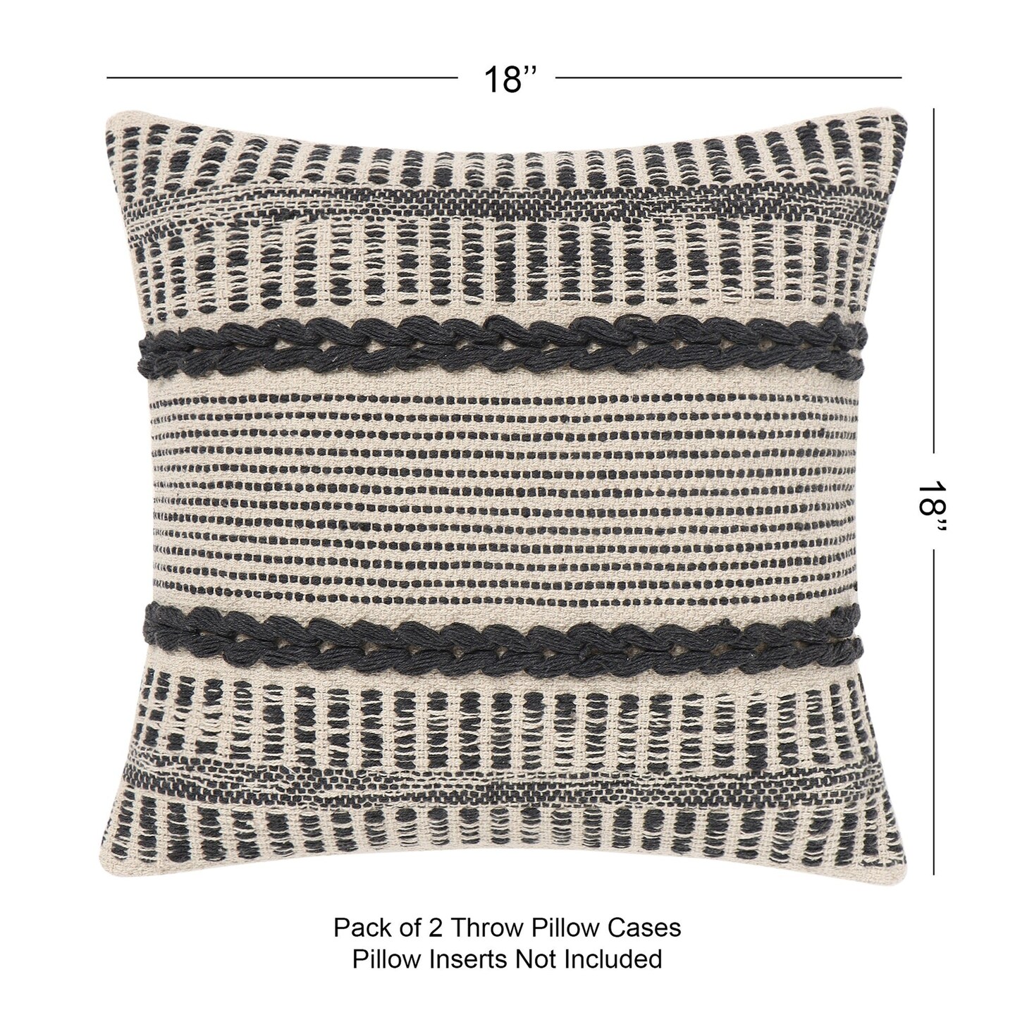 Edge Collections - 18"x18" - Dark Gray - Bohemian Textured Throw Pillow Covers for Cozy Decor - 2 Pieces
