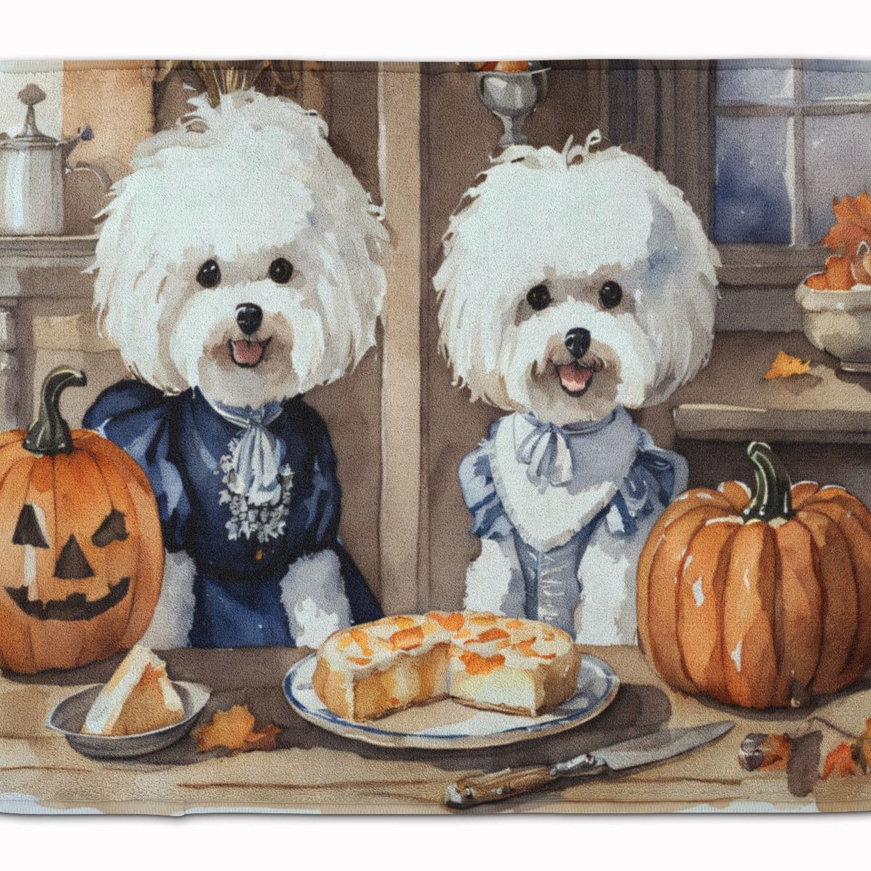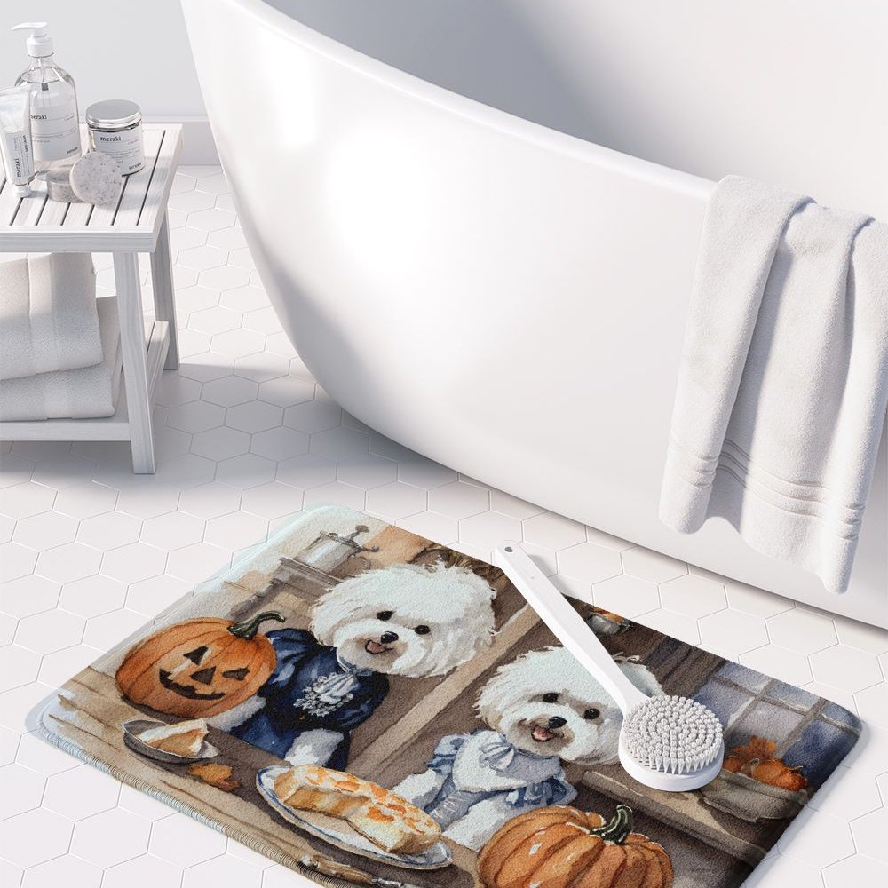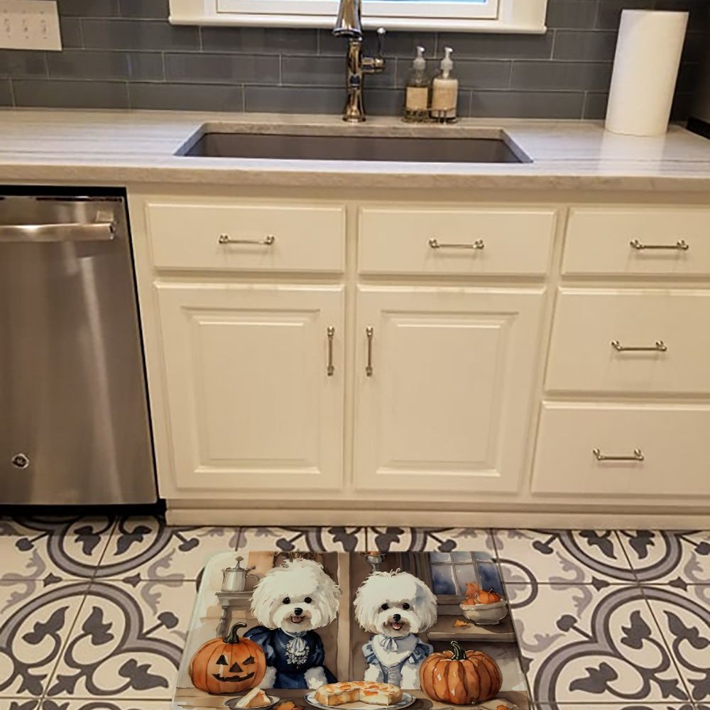 Edge Collections - 19" X 27" - Multicolor - Bichon Frise Fall Kitchen Pumpkins Memory Foam Kitchen Mat - 1 Piece