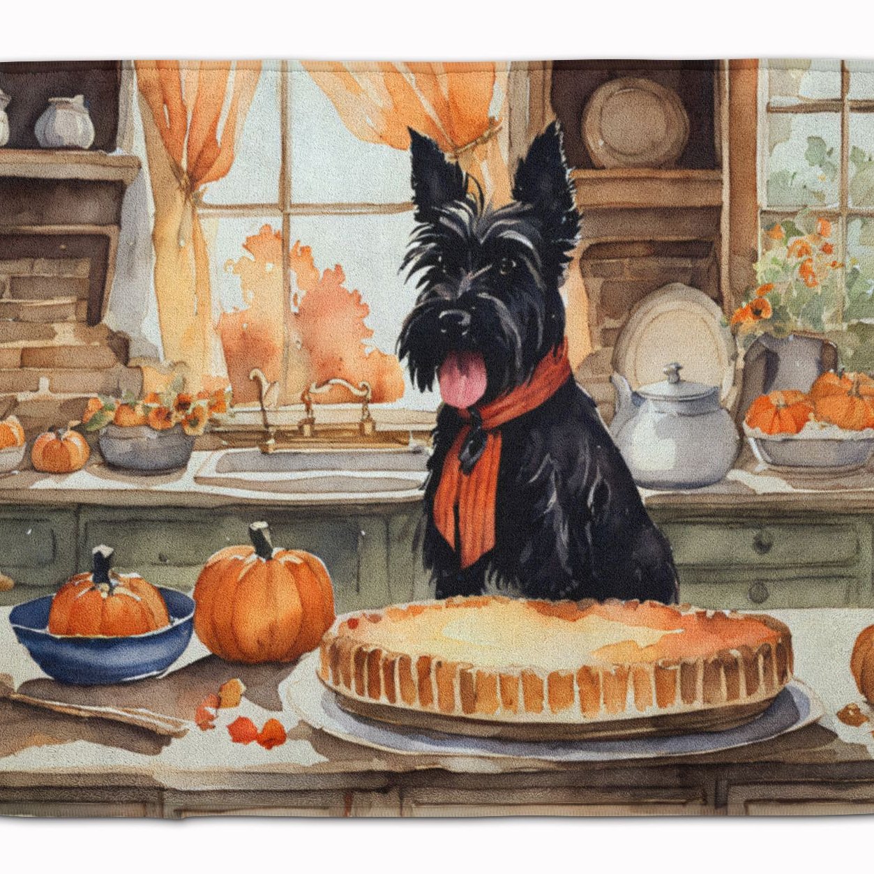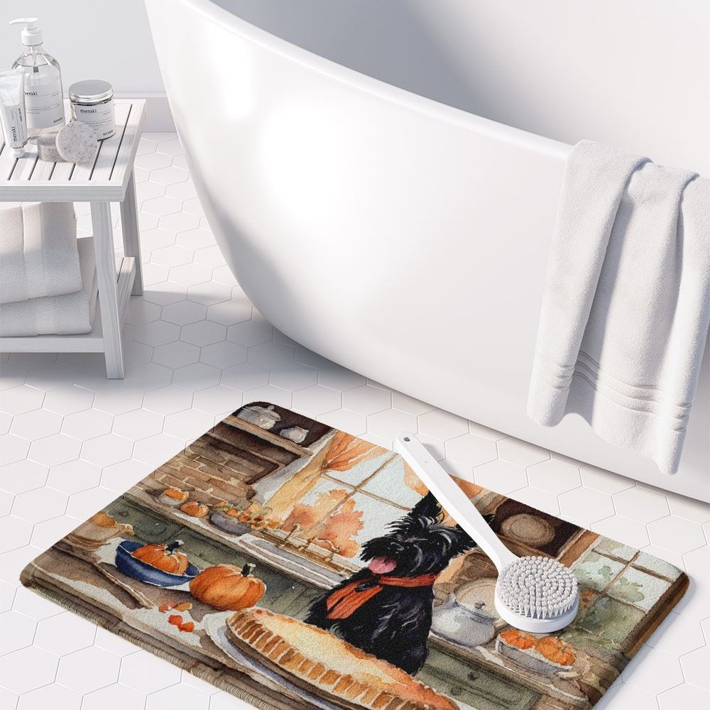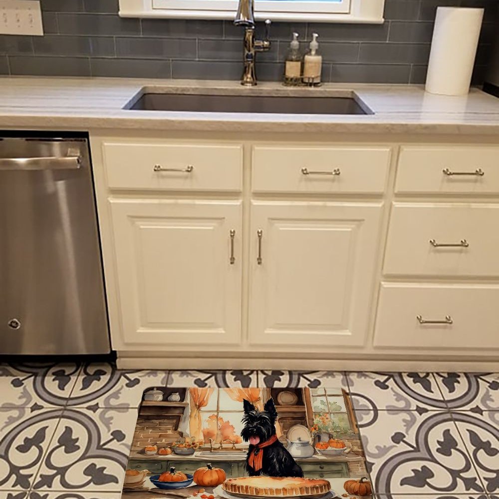 Edge Collections - 19" X 27" - Multicolor - Scottish Terrier Fall Kitchen Pumpkins Memory Foam Mat - 1 Piece