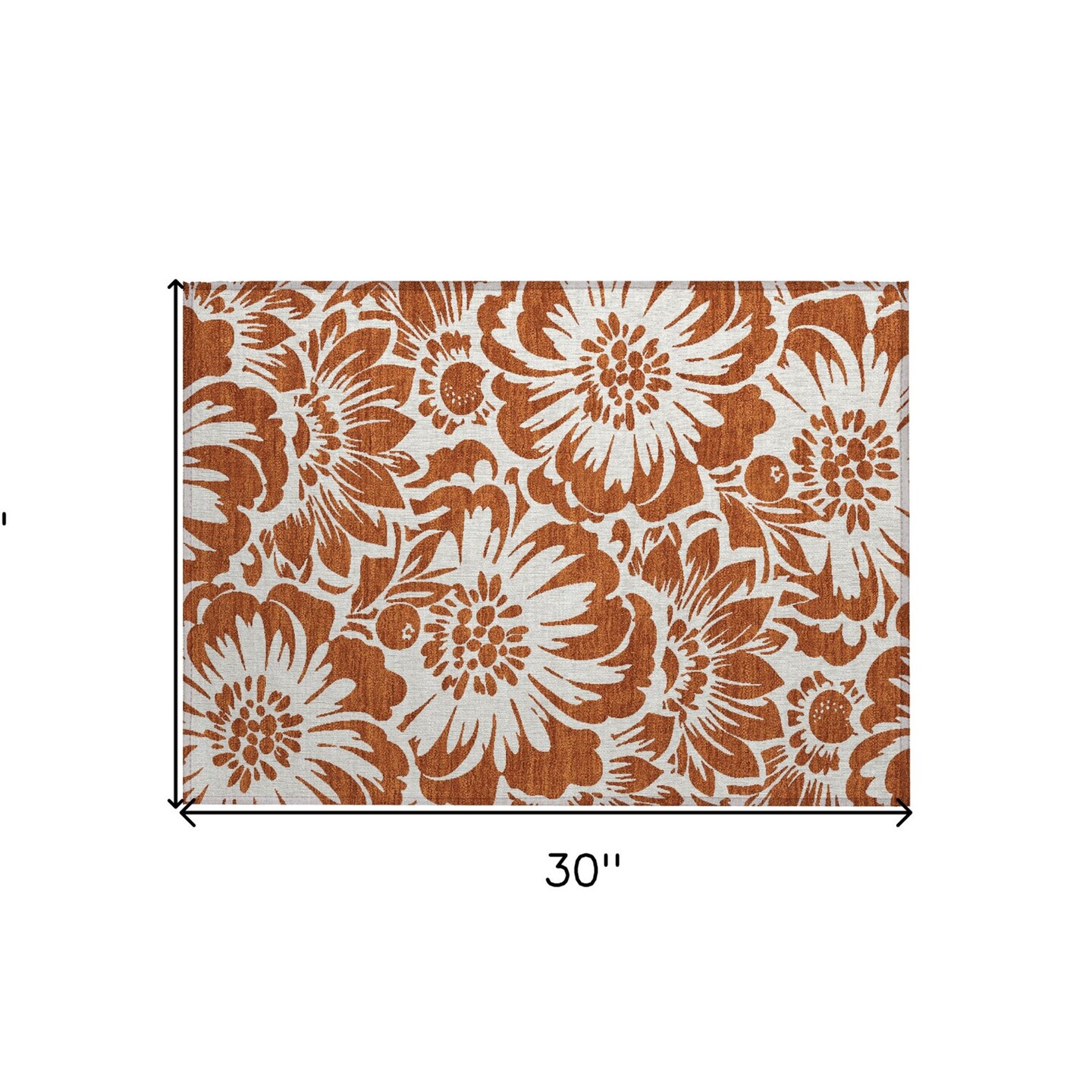 Edge Collections - 2' x 3' - Brown - Floral Washable Area Rug for Indoor and Outdoor Use - 1 Piece
