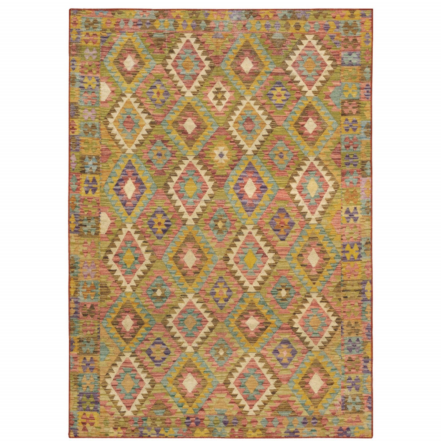 Edge Collections - 2' X 3' - Multicolor - Southwestern Design Stain-Resistant Area Rug - 1 Piece