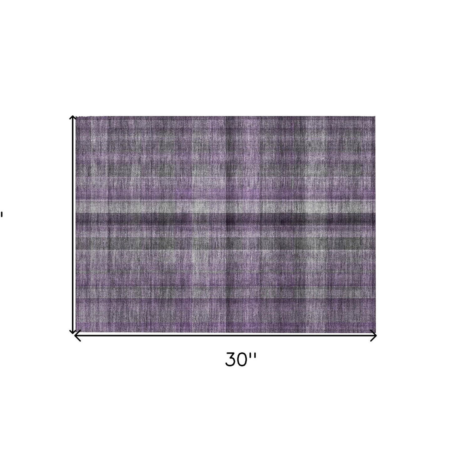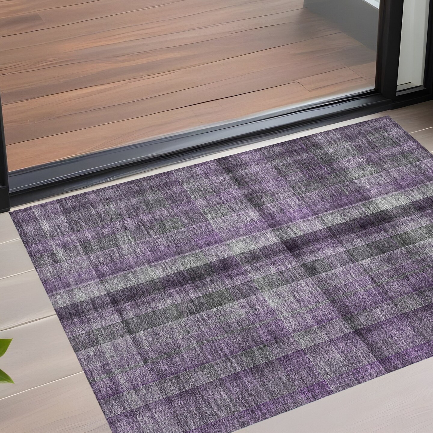 Edge Collections - 2' x 3' - Purple - Indoor and Outdoor Stain Resistant Plaid Area Rug - 1 Piece