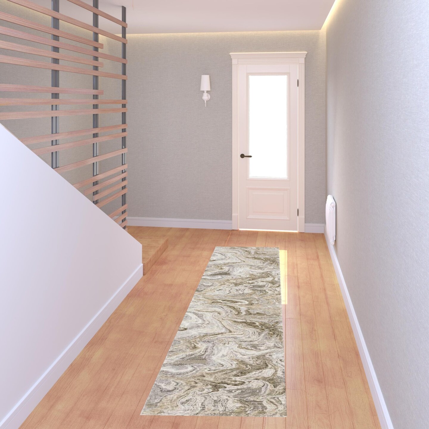 Edge Collections - 2' X 8' - Brown - Artistic Stain-Resistant Abstract Runner Rug - 1 Piece