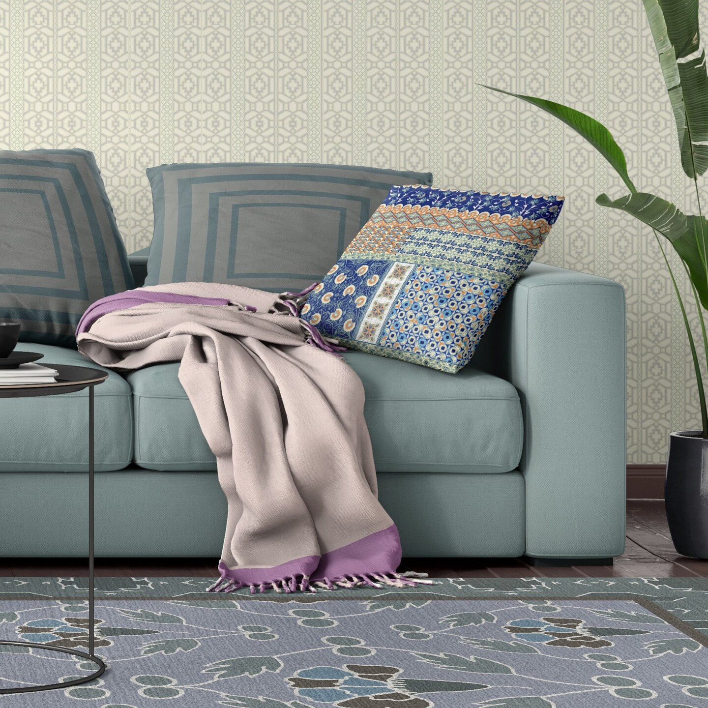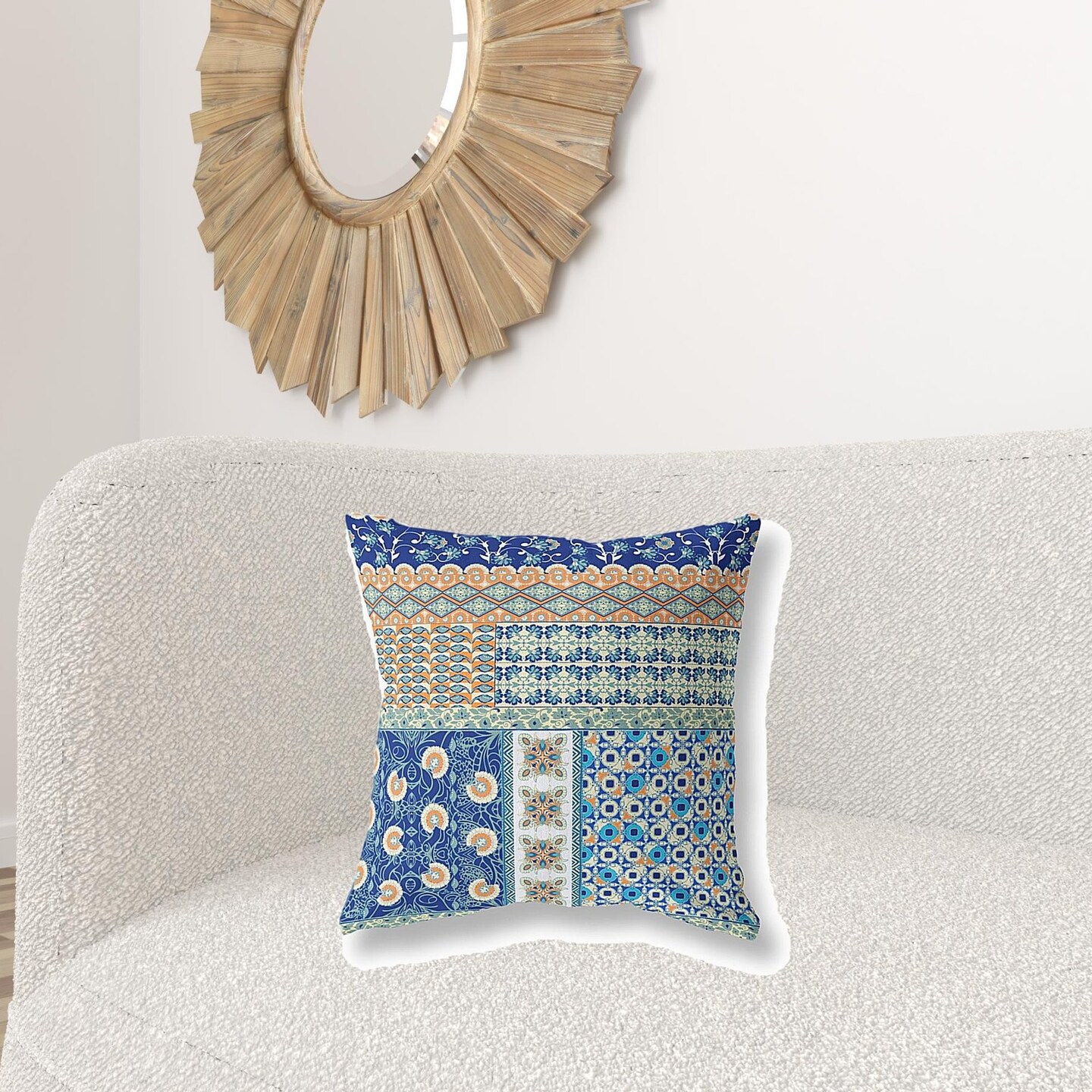 Edge Collections - 20" x 20" x 5" - Blue - Bohemian Patchwork Throw Pillow for Indoor and Outdoor Use - 1 Piece