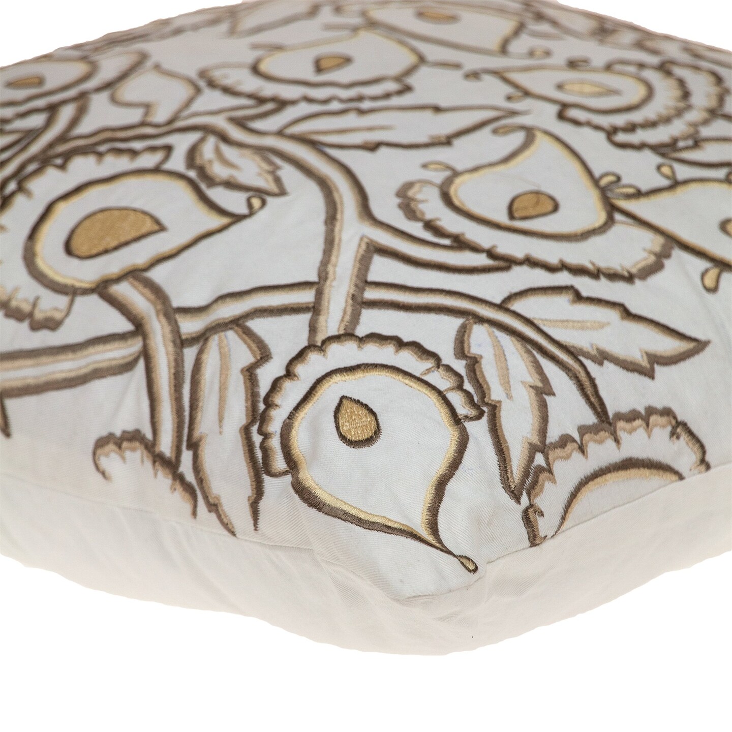 Edge Collections - 22 x 22 x 6 - White - Embroidered Floral Accent Pillow Cover - 1 Pcs