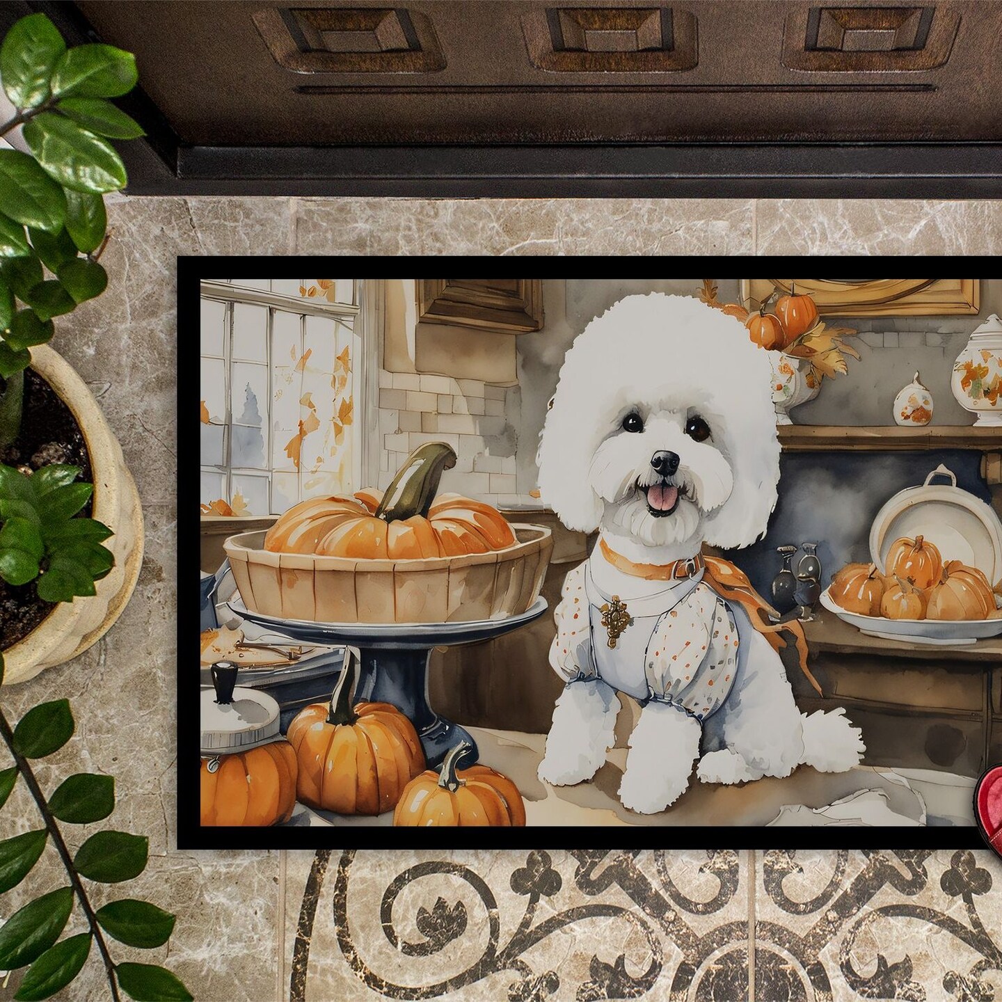 Edge Collections - 24" x 36" - Multicolor - Bichon Frise Fall Kitchen Pumpkins Doormat - 1 Piece