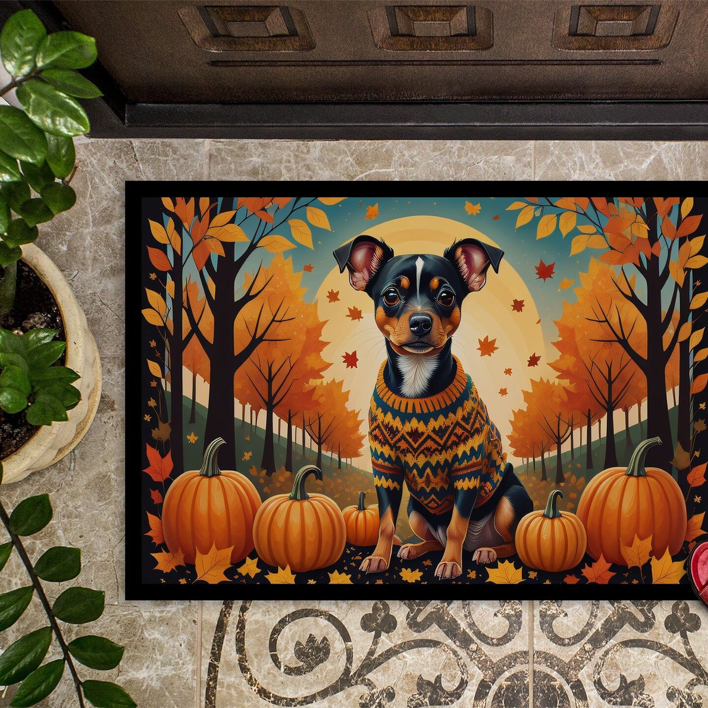 Edge Collections - 24" x 36" - Multicolor - Miniature Pinscher Doormat Indoor Outdoor Rug Non Slip Washable - 1 Piece