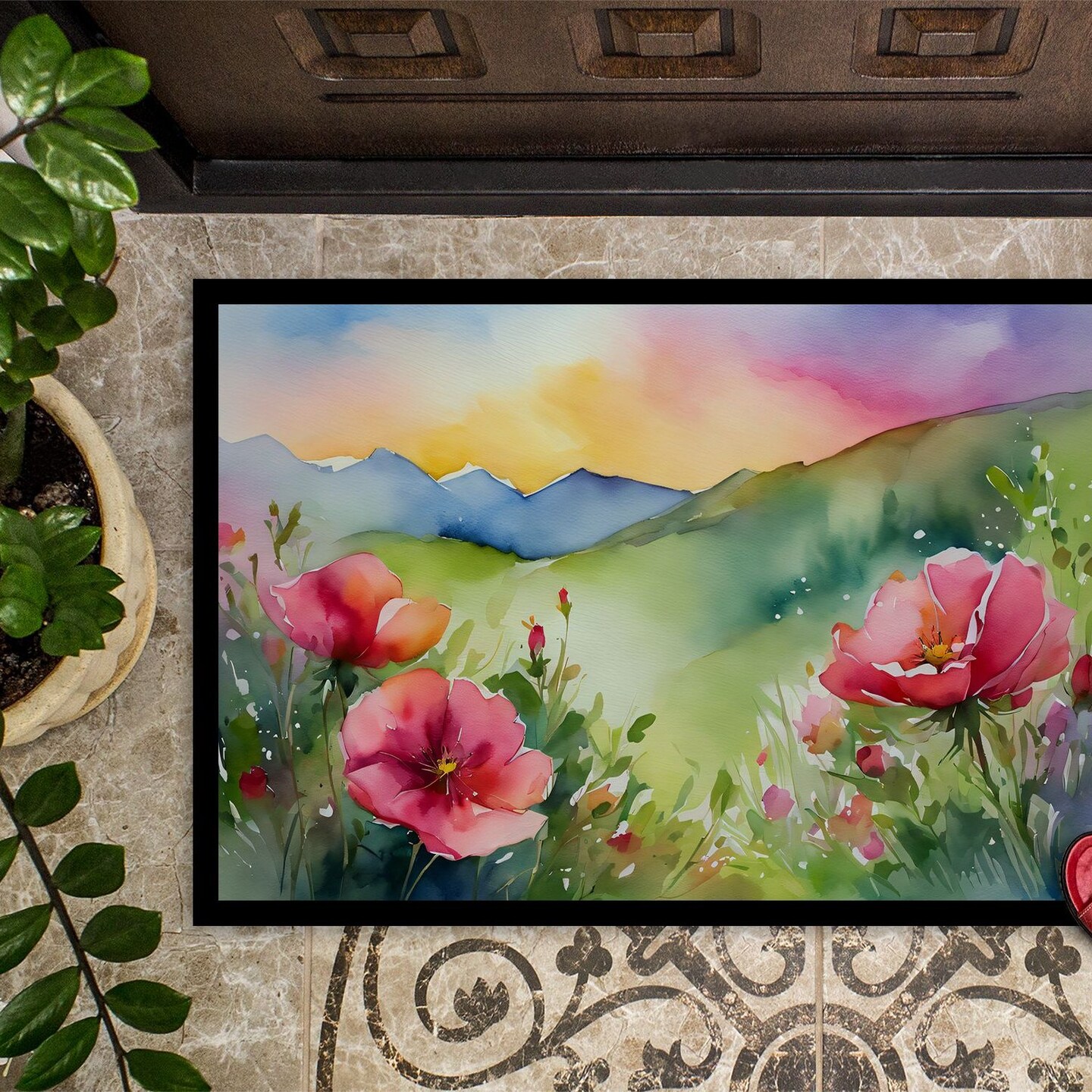 Edge Collections - 24" x 36" - Multicolor - North Dakota Wild Prairie Roses Doormat Indoor Outdoor Rug - 1 Piece