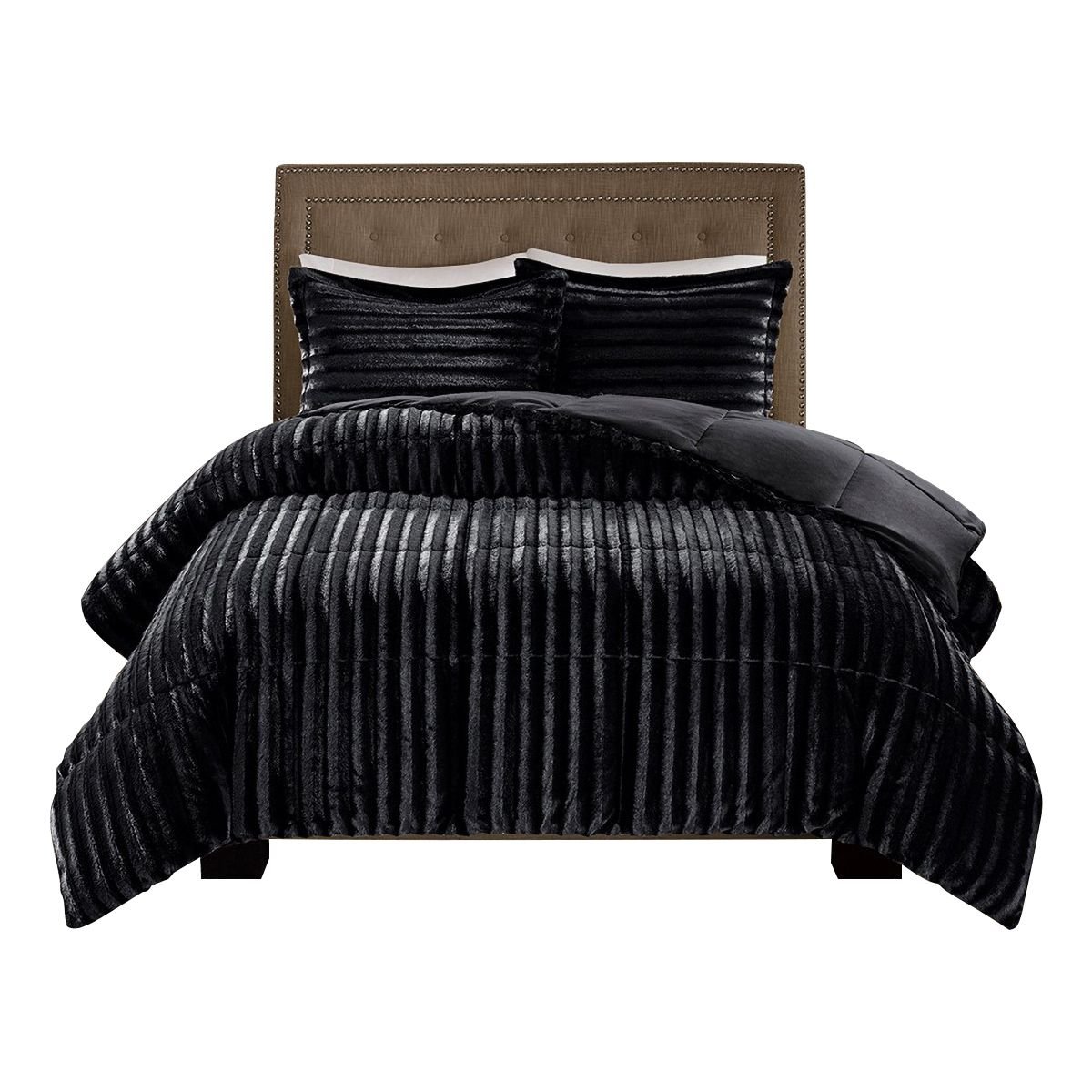 Edge Collections - 26" x 20" - Black - Duke Full Queen Grey Faux Fur Comforter Set - 1 Set