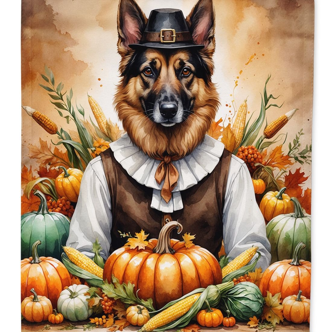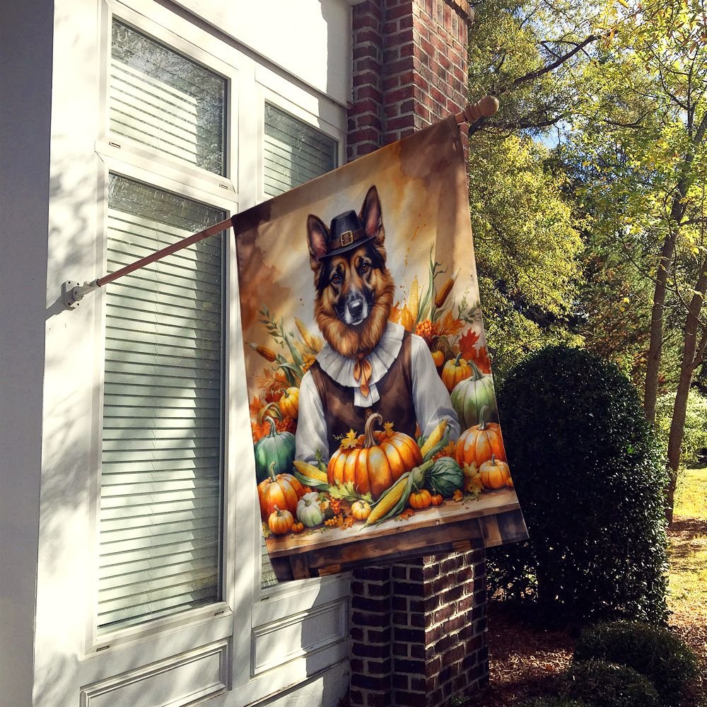 Edge Collections - 28" x 40" - Multicolor - German Shepherd ThanksgivingDecorative House Flag Large Sleeve Pole Banner - 1 Piece