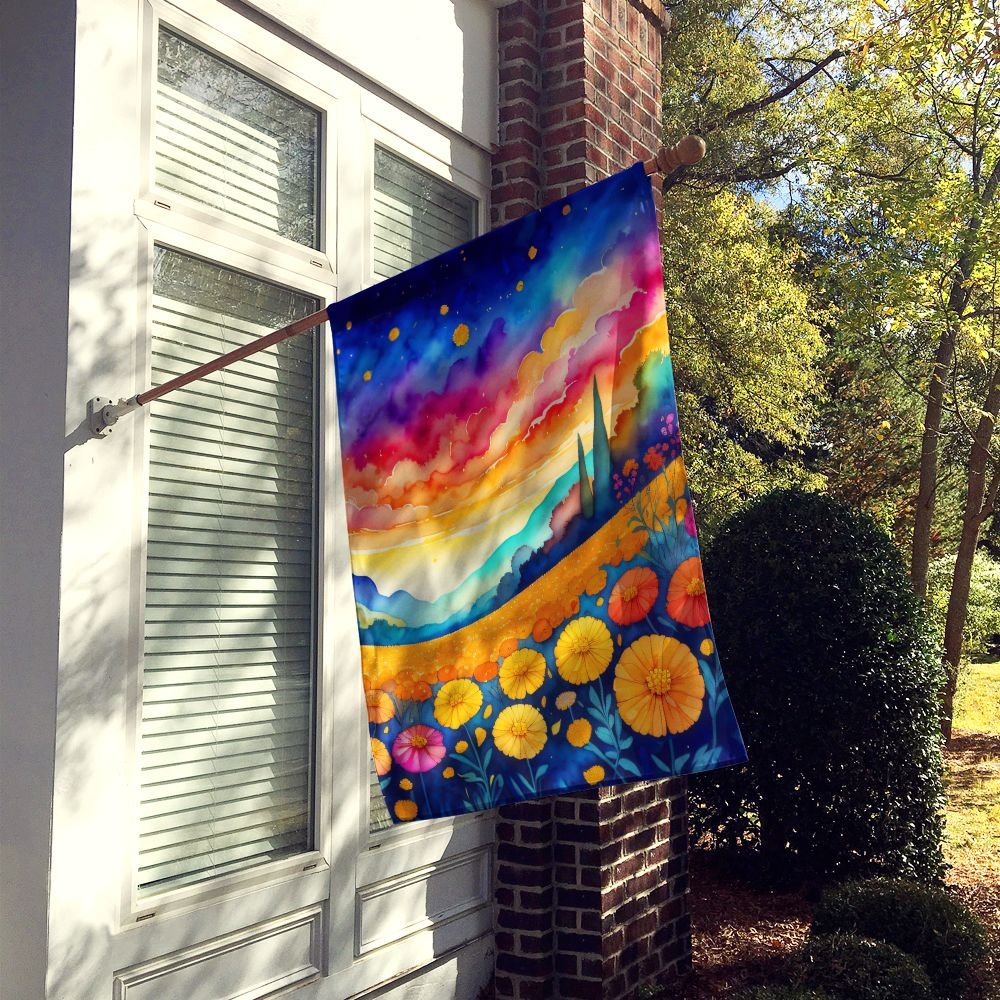 Edge Collections - 28" x 40" - Multicolor - House Marigolds In Color Decorative Sleeve Pole Flag Large - 1 Piece
