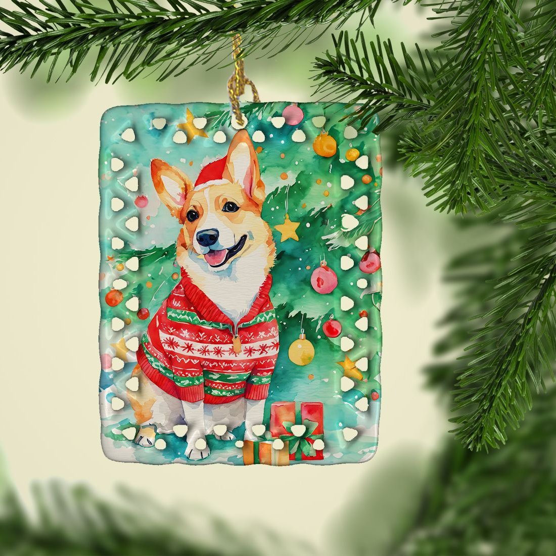 Edge Collections - 2.80" X 0.15" - Multicolor - Corgi Holiday Porcelain Ornament - 1 Piece