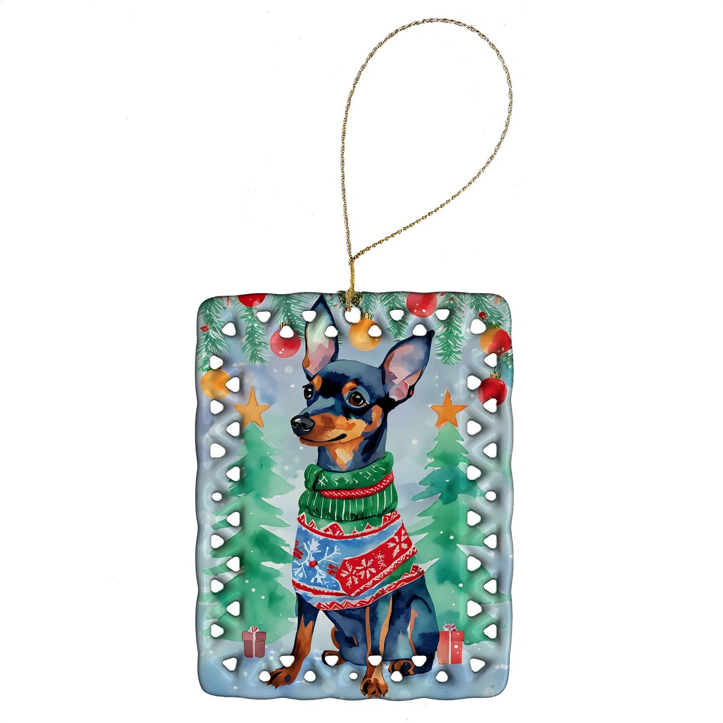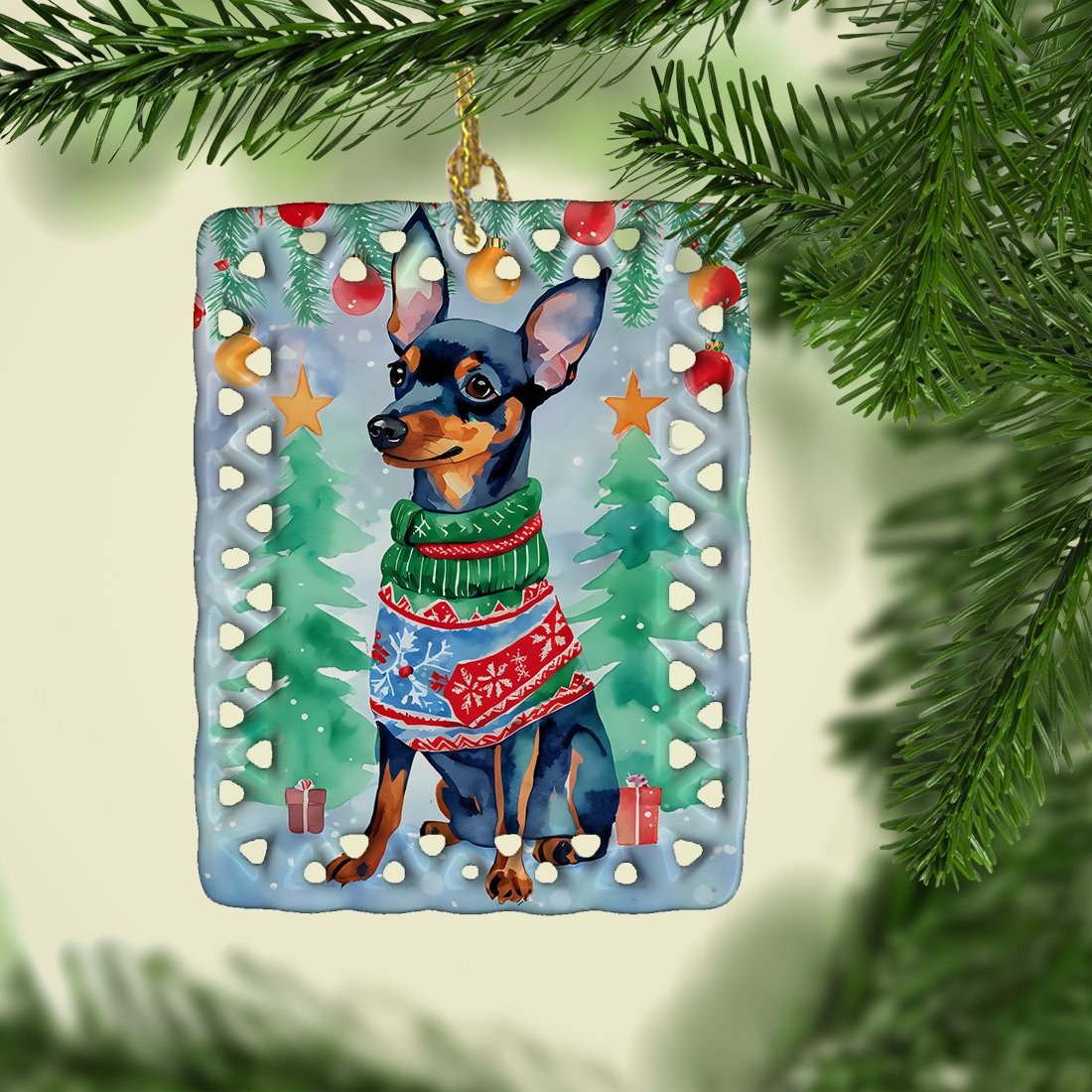 Edge Collections - 2.80" X 0.15" - Multicolor - Miniature Pinscher Christmas Ornament - 1 Piece