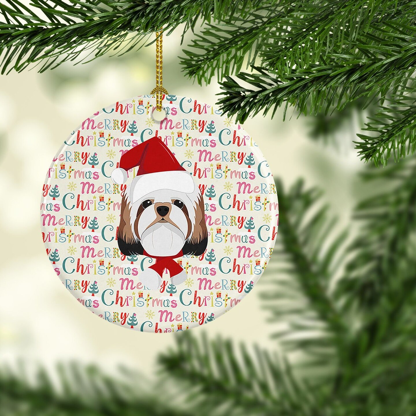 Edge Collections - 2.80" X 0.15" - Multicolor - Shih Tzu Christmas Ornament - 1 Piece