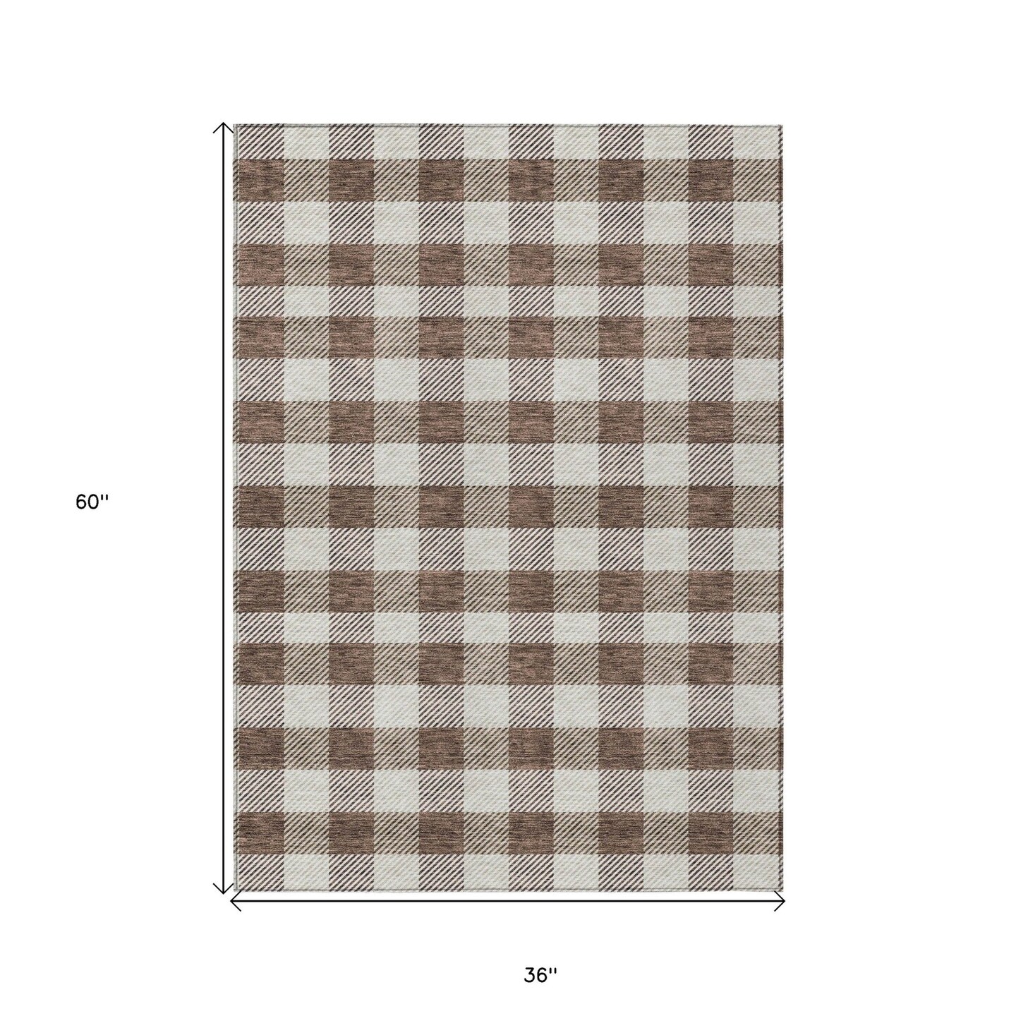 Edge Collections - 3' x 5' - Brown - Plaid Washable Indoor Outdoor Area Rug - 1 Piece