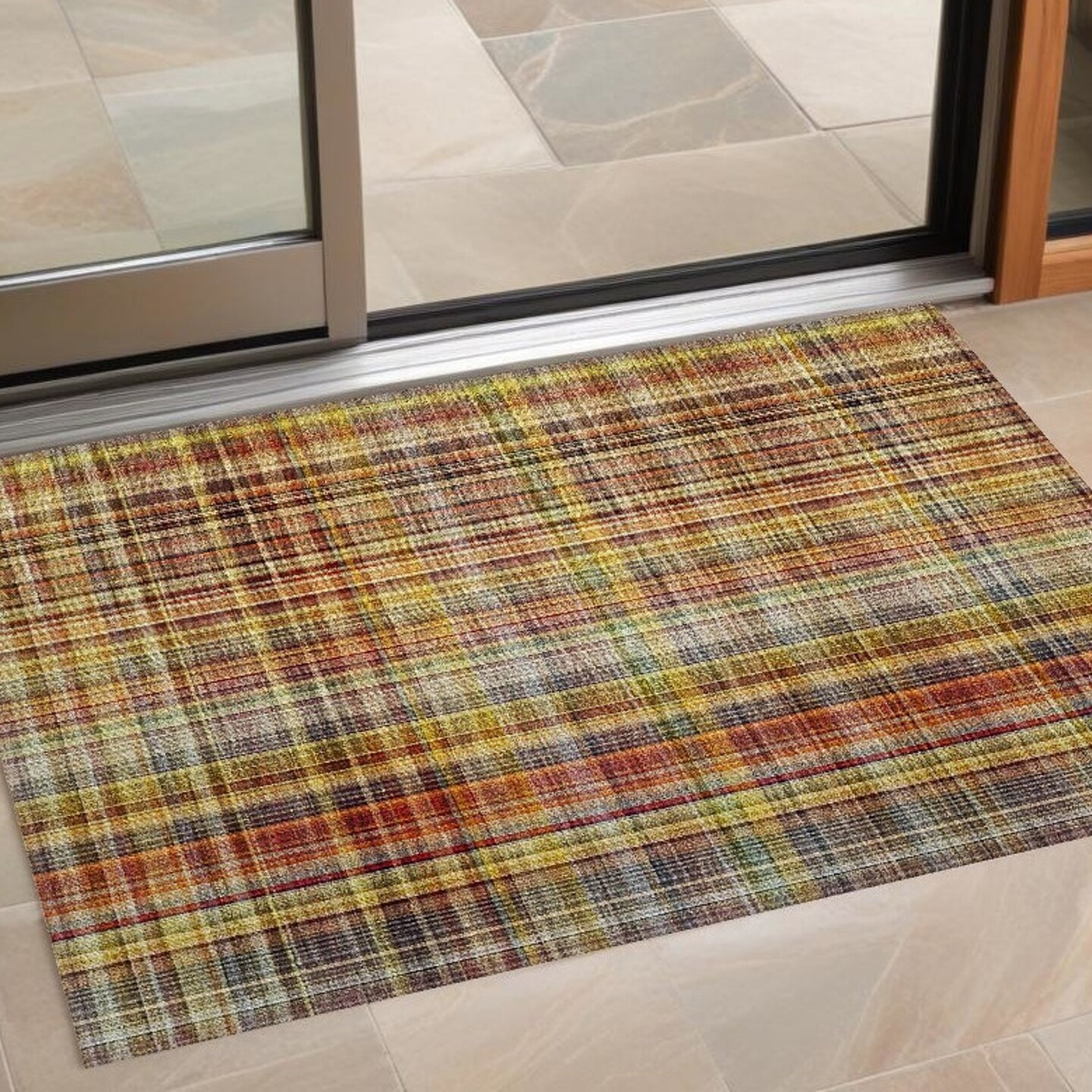 Edge Collections - 3' x 5' - Orange - Washable Non-Skid Area Rug with Plaid Design - 1 Piece