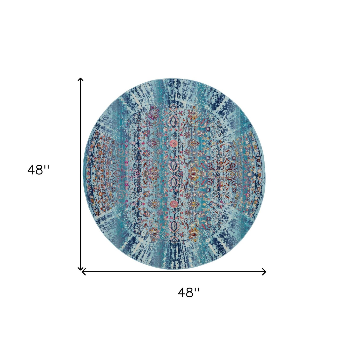 Edge Collections - 4' - Multicolor - Artistic Floral Round Area Rug - 1 Piece