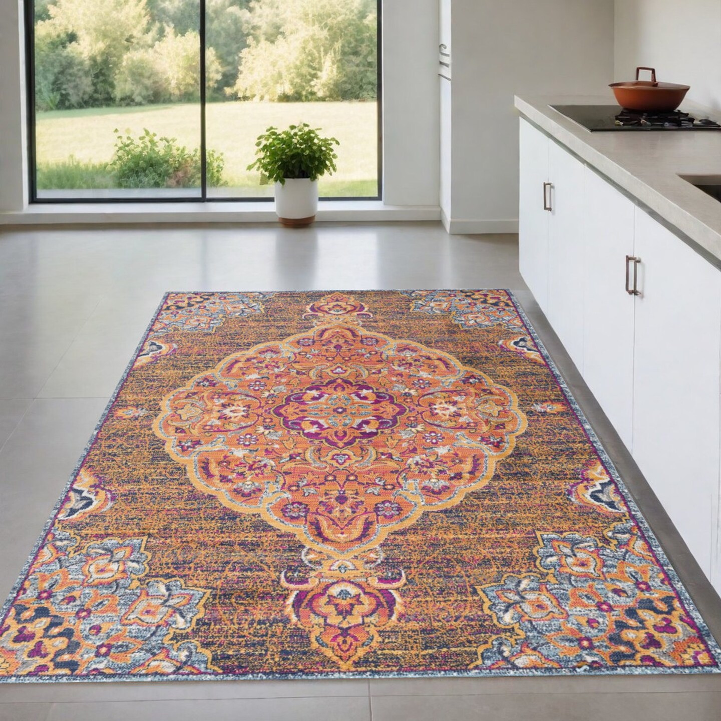 Edge Collections - 4' X 6' - Orange - Elegant Rustic Medallion Indoor Area Rug - 1 Piece