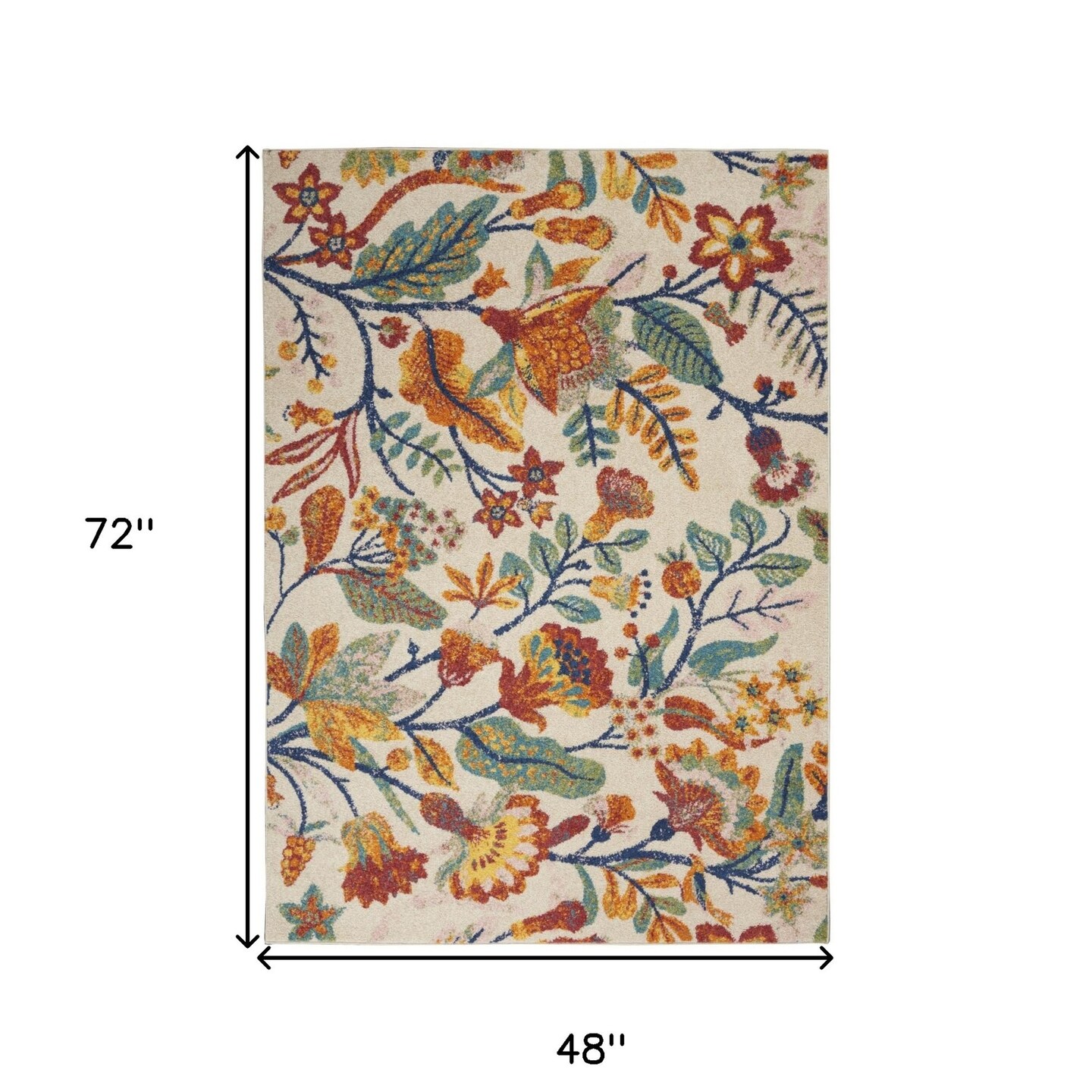 Edge Collections - 4' X 6' - Orange - Floral Power Loom Area Rug for Home Décor - 1 Piece