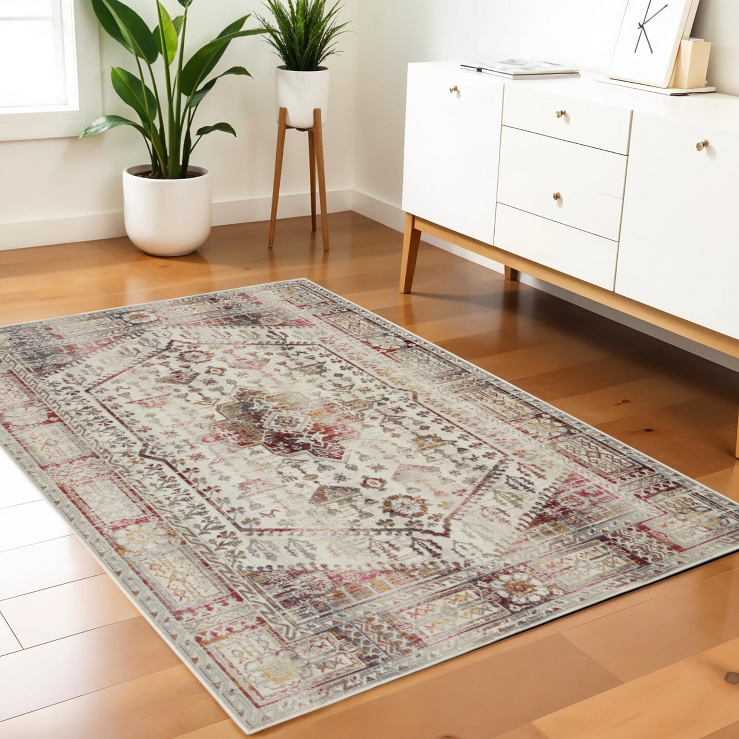 Edge Collections - 4' X 6' - Red - Durable Floral Distressed Area Rug for Transitional Spaces - 1 Piece