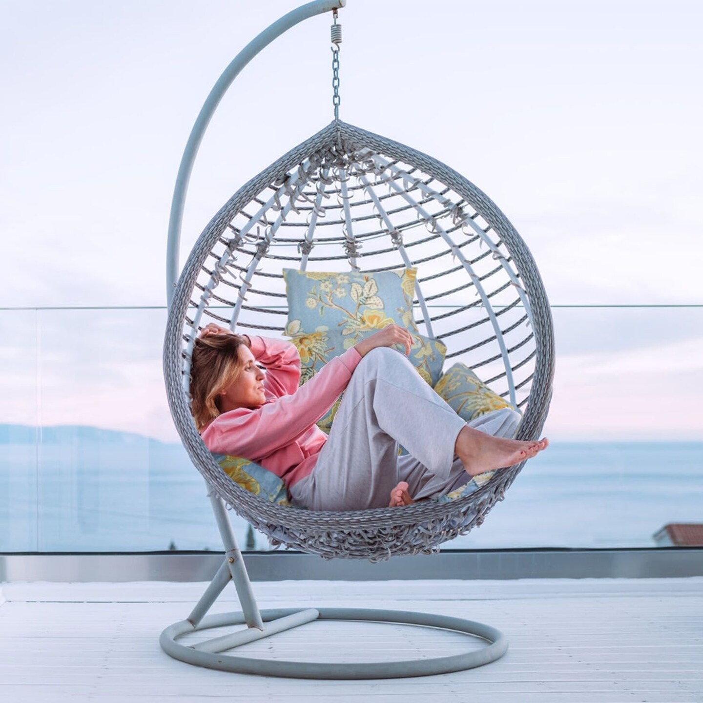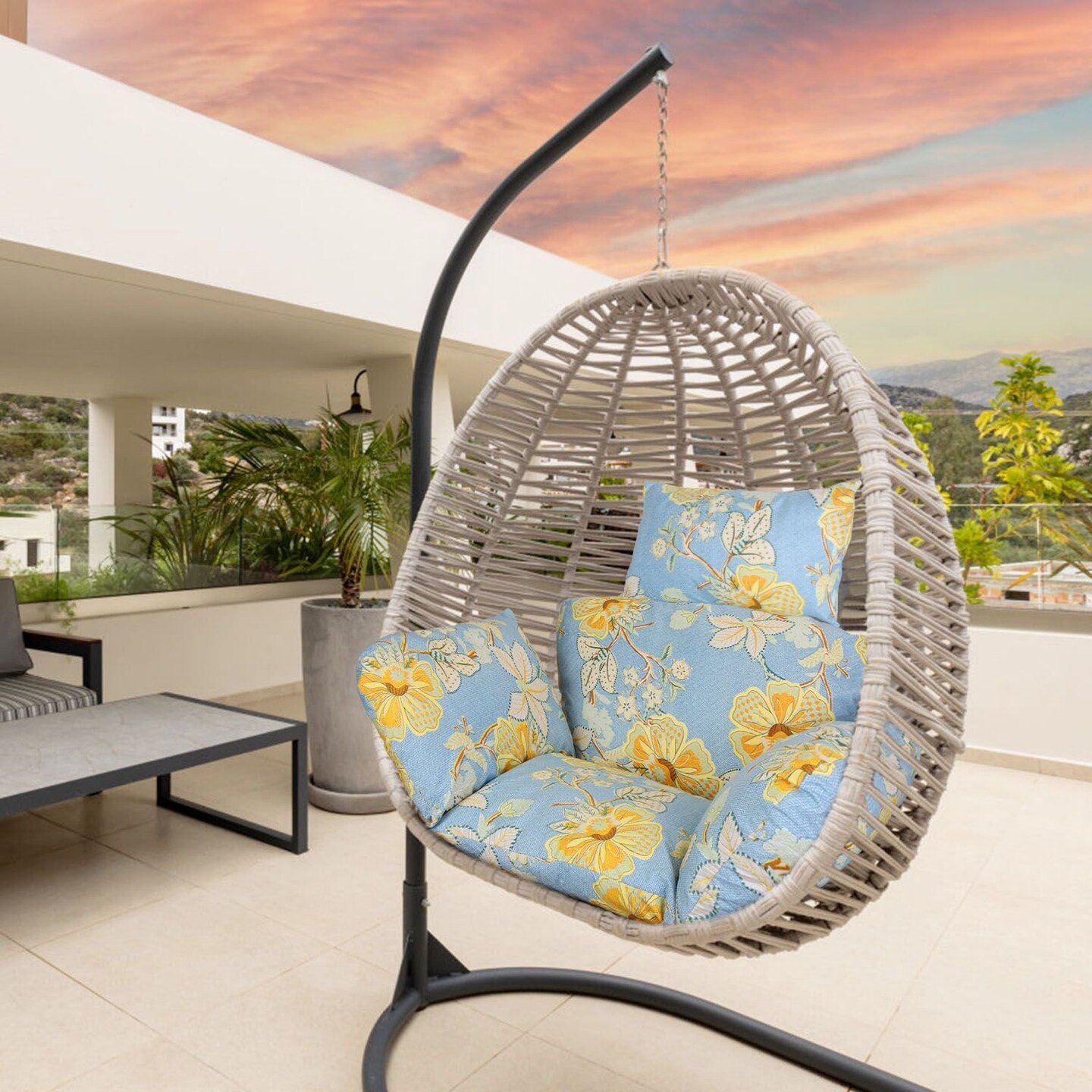 Edge Collections - 45" x 49" - Multicolor - Hanging Egg Chair Cushion Light Blue with Yellow Leaf - 1 set