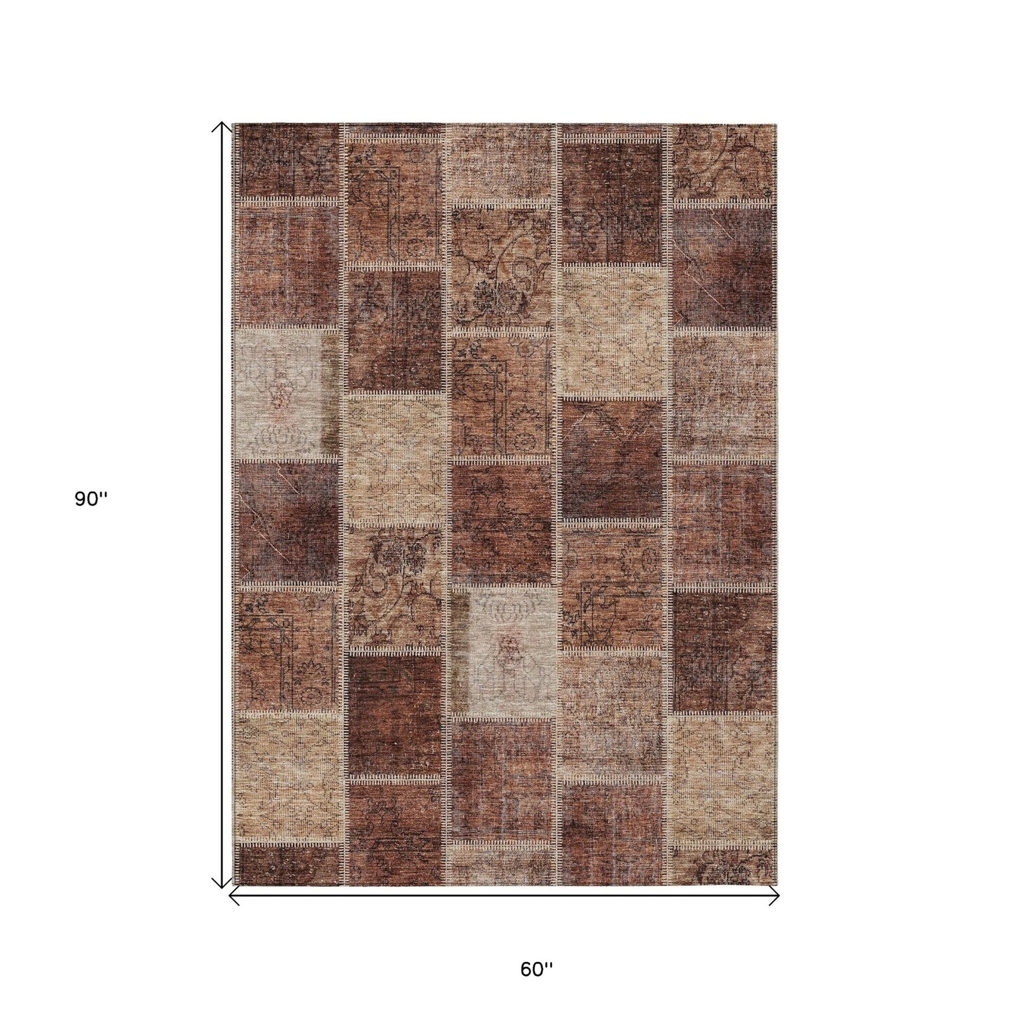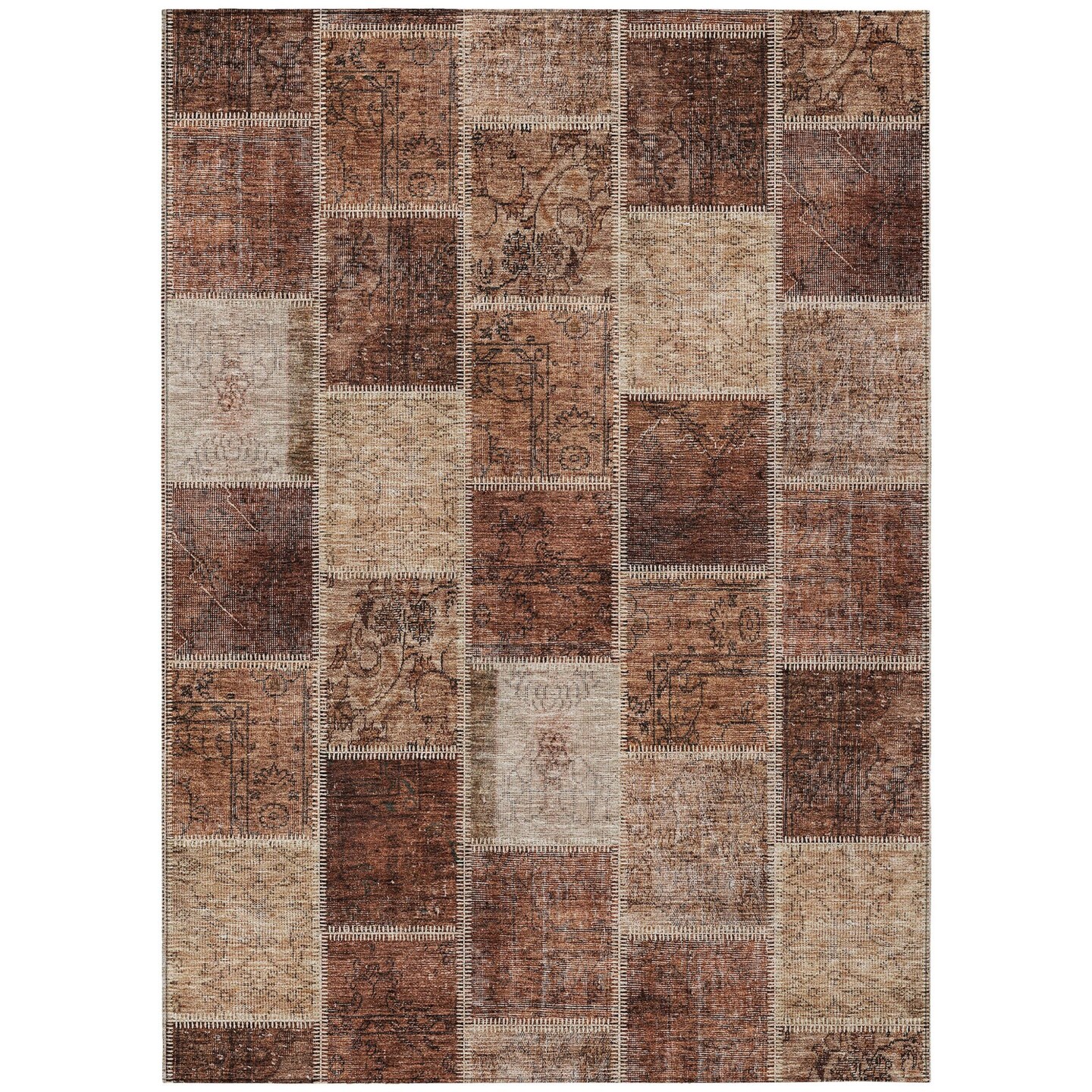 Edge Collections - 5' x 8' - Brown - Washable Patchwork Area Rug for Indoor and Outdoor Use - 1 Piece