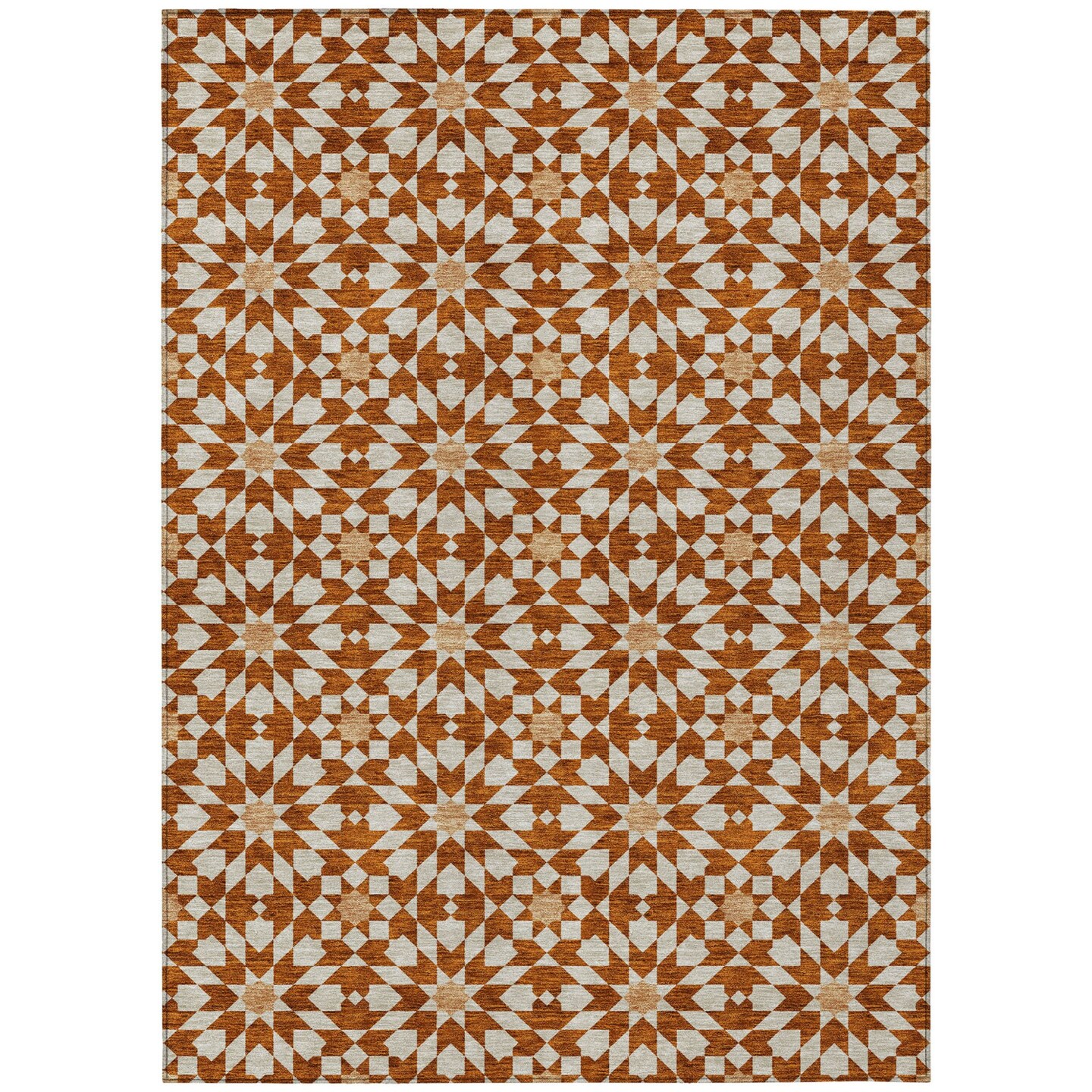 Edge Collections - 5' x 8' - Orange - Floral Washable Area Rug Medallion for Indoor and Outdoor Use - 1 Piece