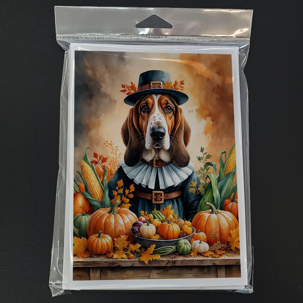 Edge Collections - 5" x 7" - Multicolor - Basset Hound Thanksgiving Greeting Cards - 8 Pieces