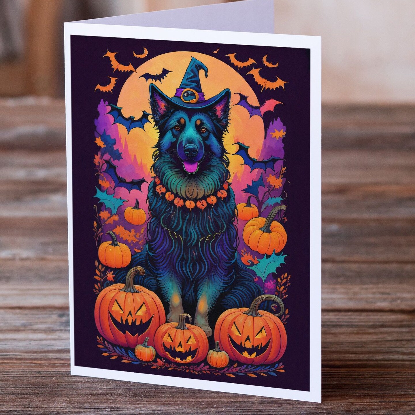 Edge Collections - 5" x 7" - Multicolor - Belgian Sheepdog Witchy Halloween Greeting Cards - 8 Pieces