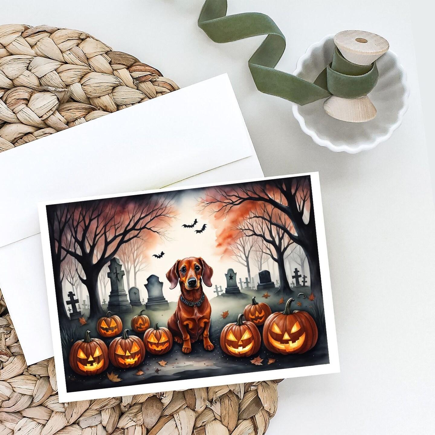 Edge Collections - 5" x 7" - Multicolor - Dachshund Halloween Greeting Cards - 8 Pieces